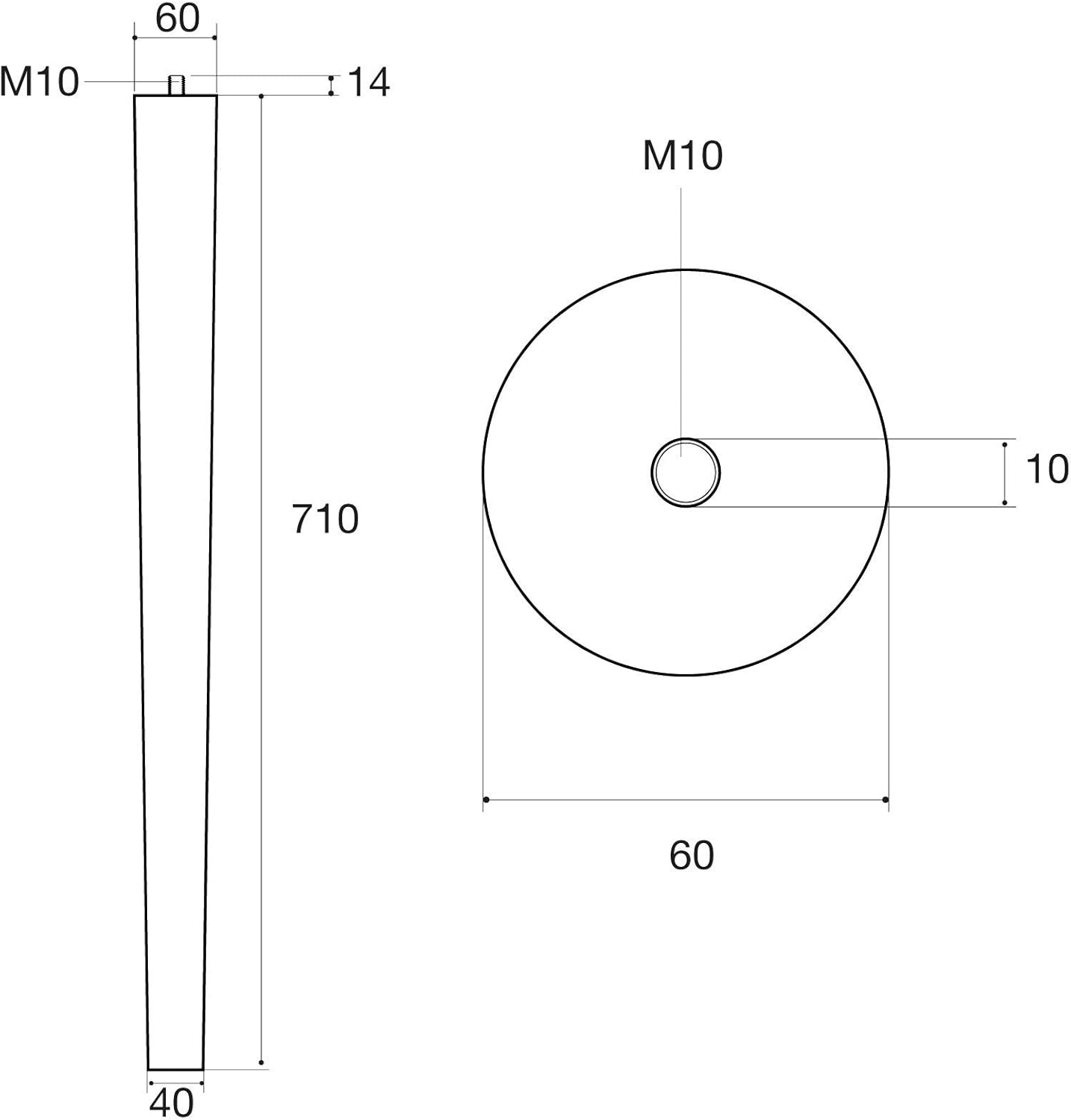 - Material: Eichenholz massiv / Oberfläche: roh (unlackiert) / Höhe: 710 mm / Durchmesser: Konisch 60 /40 mm / Stockschraube mit M10 x 14 mm Gewinde / Holz ist ein Naturprodukt: Farbe und Struktur können von der Abbildung abweichen. Möbelfüsse aus