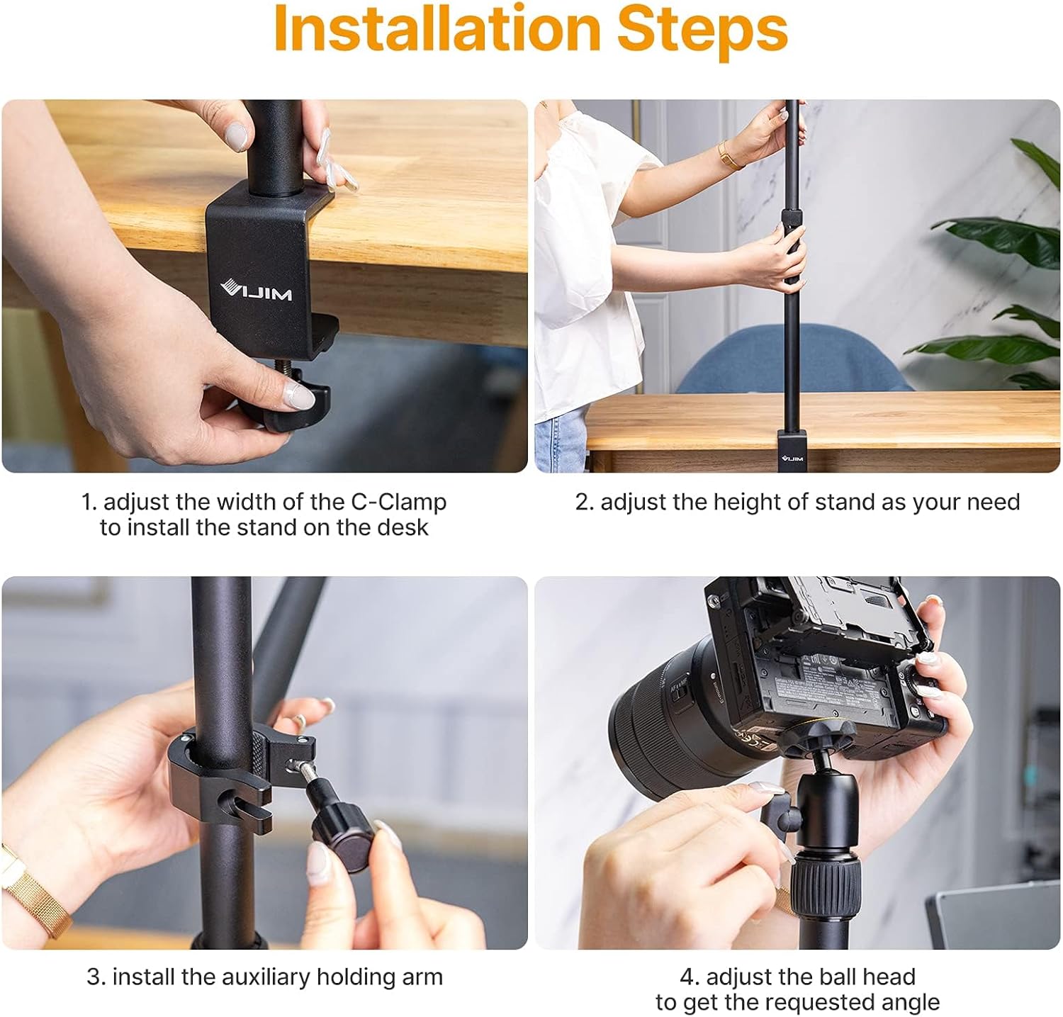 - ▶【Stabil & Robust】 Schöne hochwertige Bauqualität. Der Hauptteleskopständer ist aus einer Aluminiumlegierung gefertigt und kann mit der robusten Klemme sicher an einem Schreibtisch befestigt werden. Im Vergleich zu anderen Tischhalterungen, die