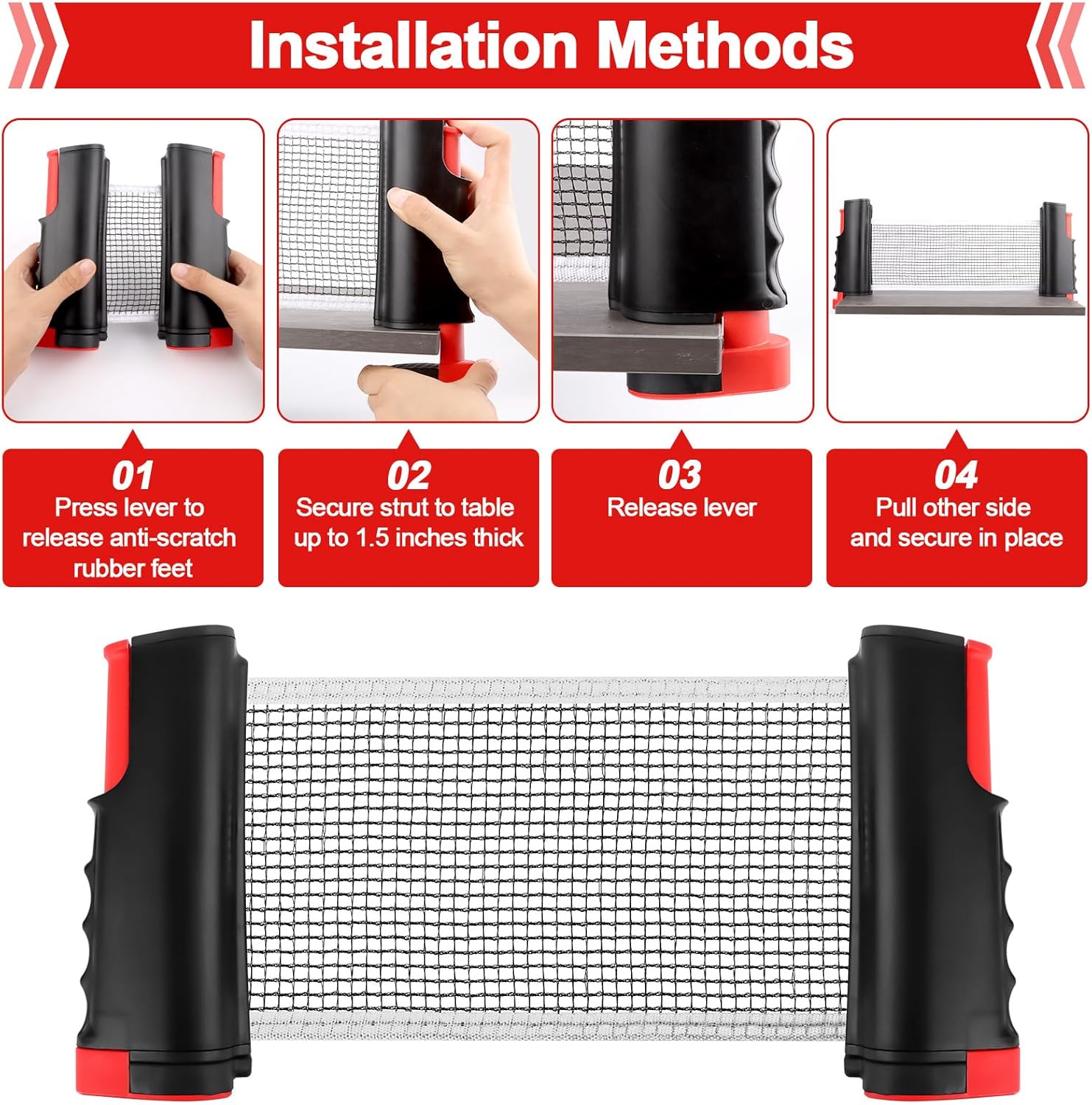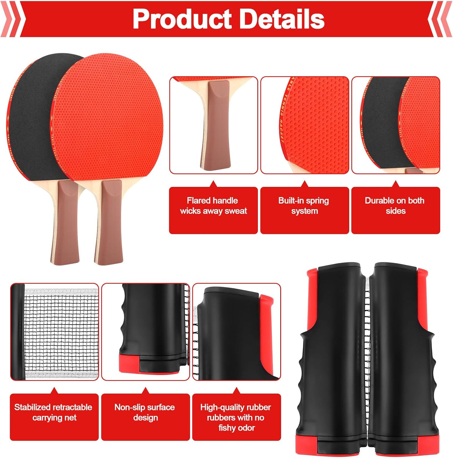 • 【Hochleistungs-Tischtennisschläger-Set】Dieses Tischtennisschläger-Set enthält 2 Tischtennisschläger, 3 Tischtennisbälle, 1 einziehbares Tischtennisnetz und 1 Kordeltasche. Kaufen Sie es und Sie haben eine komplette Tischtennisausrüstung!