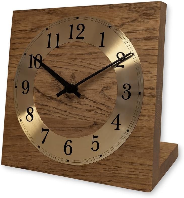 - - Die schlichte Tischuhr aus Holz mit den Massen 17,5 x 17,5 x 10 cm besticht durch ihr minimalistisches Design und ihre Funktionalität. Die schwarzen Zeiger heben sich deutlich vom Metall Zifferblatt ab und ermöglichen eine einfache Ablesbarkeit der