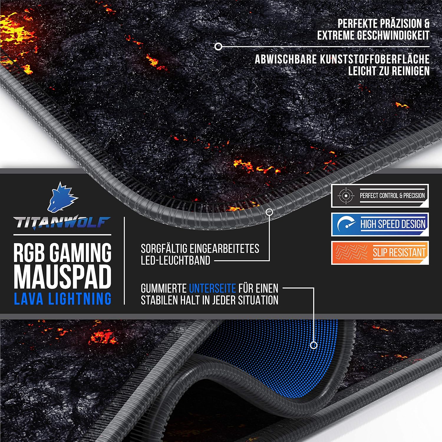 - Kombiniere das Mauspad mit den leuchtenden Tastaturen und Gamingmäusen von Titanwolf und erlebe das Zusammenspiel aller Farben!