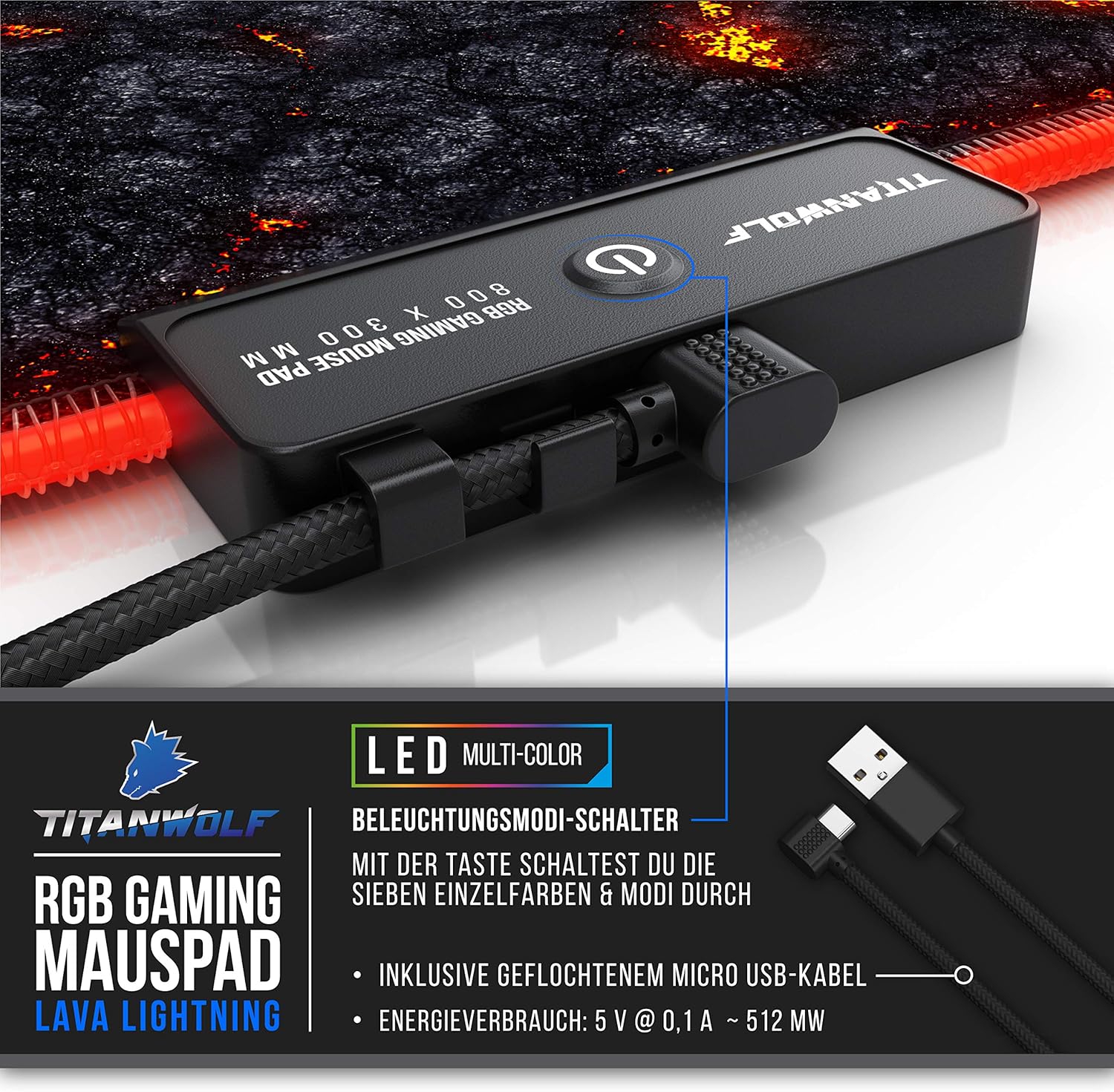 - Geniesse atemberaubende Farben und Effekte auf Deinem Schreibtisch! Das 800 x 300 mm grosse Mauspad lässt sieben kräftige RGB-Farben aufleuchten. Deine Freunde werden staunen. Schliesse das Mauspad einfach über das beigefügte USB-Kabel an Deinen