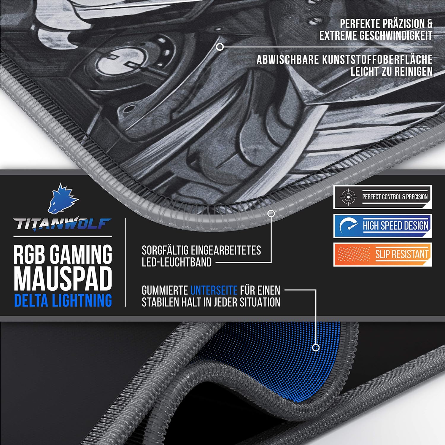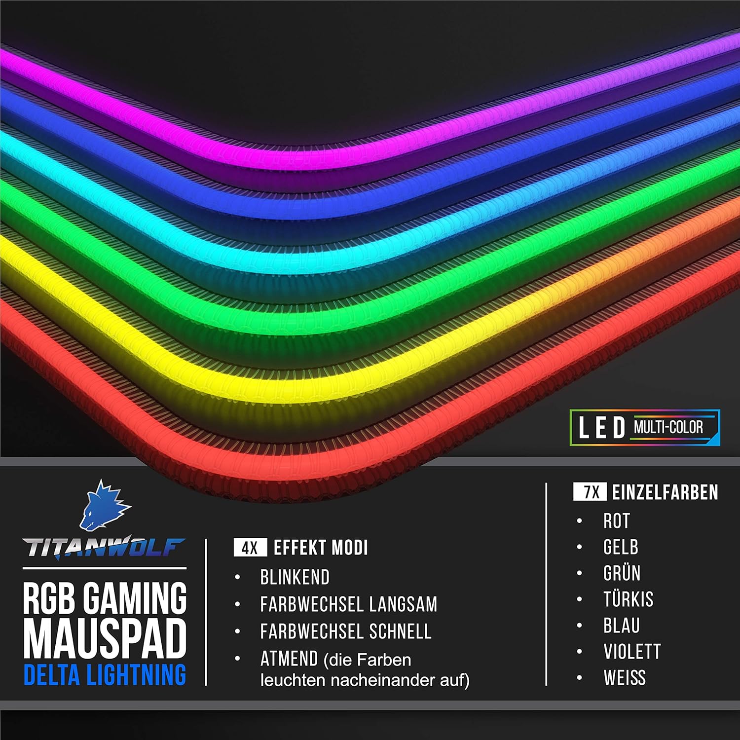 - Kombiniere das Mauspad mit den leuchtenden Tastaturen und Gamingmäusen von Titanwolf und erlebe das Zusammenspiel aller Farben!