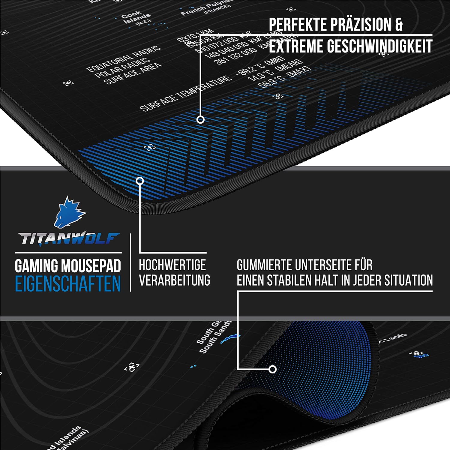 Titanwolf – XXL Gaming Mauspad 900x400 mm - Tischunterlage mousepad gross - Präzision und Geschwindi