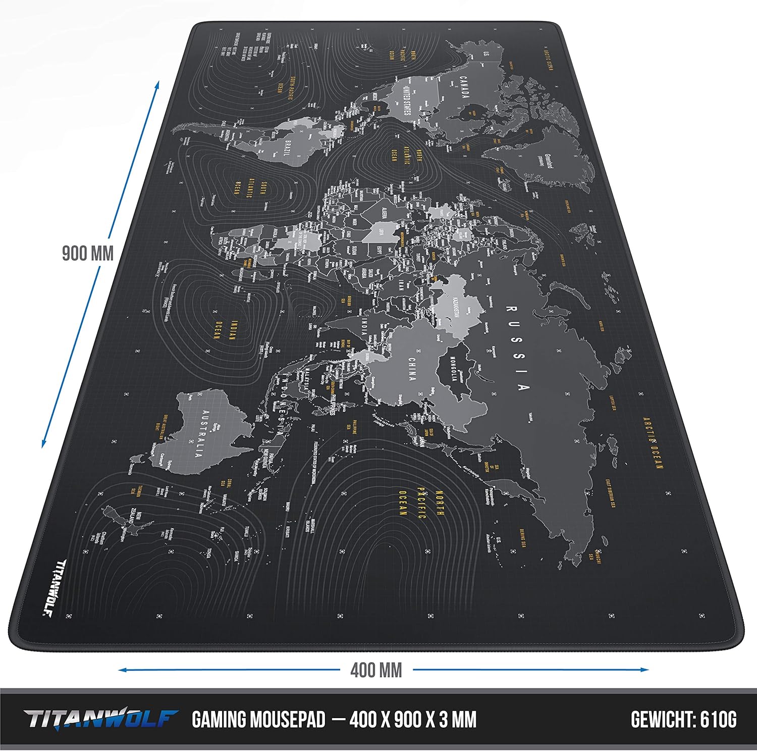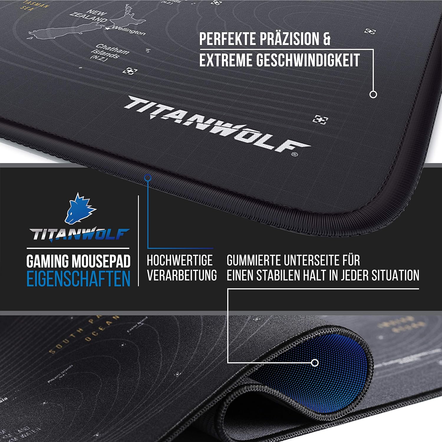 - Das 900 x 400 mm grosse Titanwolf Stoffmauspad richtet sich an passionierte Gamer, die besonderen Wert auf Geschwindigkeit, Präzision und Komfort legen. | 303358