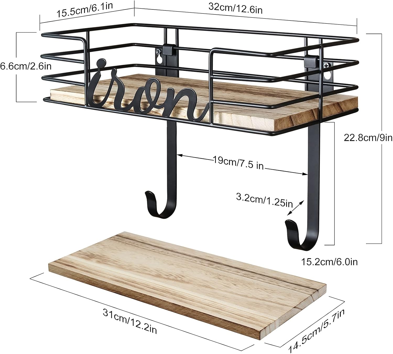 - Platzsparend für die Waschküche: Organisieren Sie alles an einem Ort; der geräumige Korb mit Holzbrett hat die perfekte Grösse für Ihr Bügeleisen, Stärke und Sprühflasche. 2 lange Metallhaken zum Aufhängen Ihres Bügelbretts: geeignet für