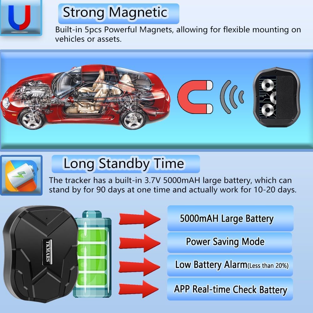 - 🚗[Verschiedene Verwendungsmöglichkeiten] Der TKMARS GPS-Tracker verfügt über einen integrierten 5-teiligen starken Magneten auf der Rückseite zur Befestigung, ist extrem robust und spritzwassergeschützt. Es eignet sich daher hervorragend als