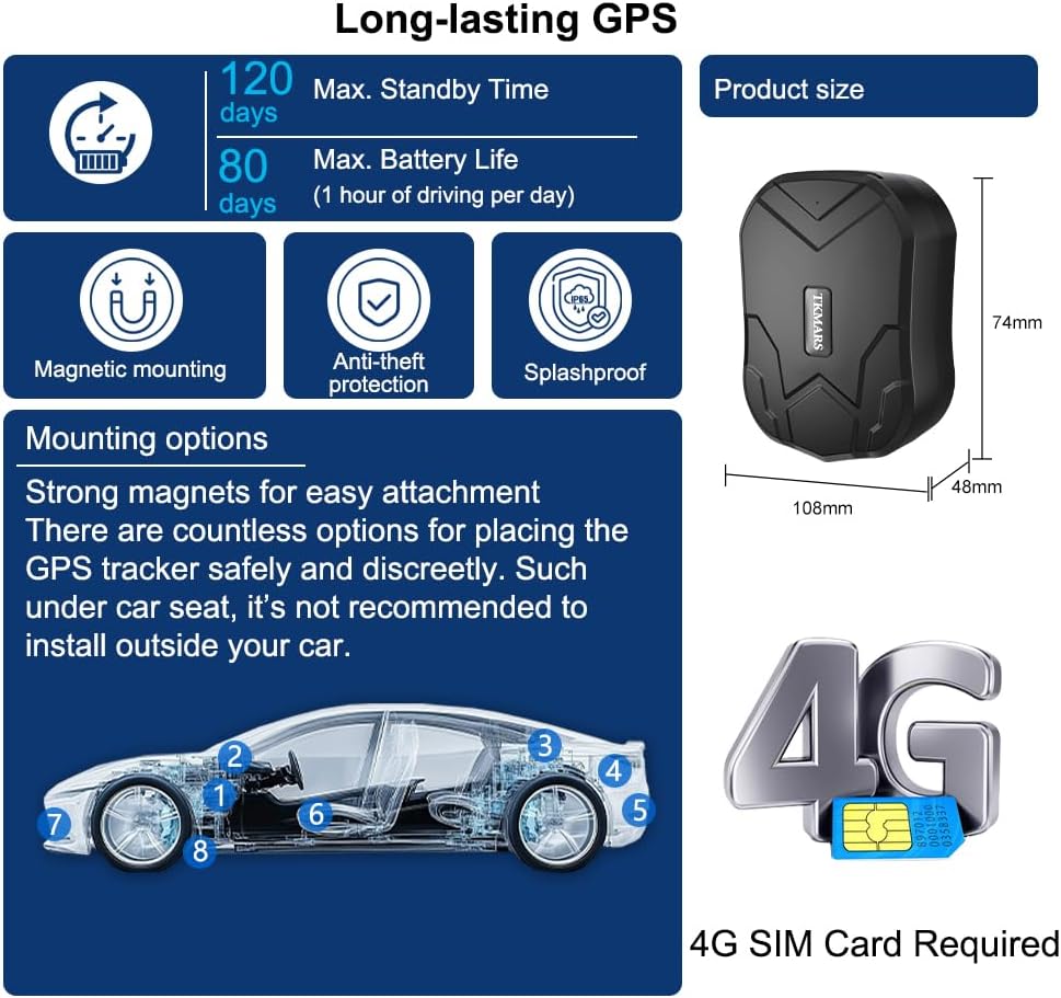 - đăHandflĂ€chengross und magnetischăDieses TK905B-GPS-GerĂ€t in HandflĂ€chengrösse (90 mm * 72 mm * 32 mm, 235 g) verfĂŒgt ĂŒber 5 eingebaute Magnete auf der RĂŒckseite, so dass keine Schraubeninstallation erforderlich ist. Legen Sie es einfach