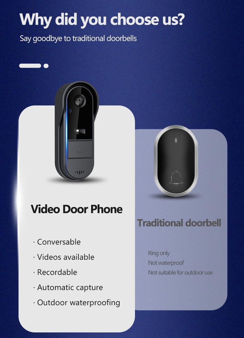 - 🏡【2.4G Bluetooth drahtlose Verbindung】: klingel mit kamera verwendet 2.4G Bluetooth drahtlose Verbindung, ein Schlüssel Paarung sein kann, sehr schnell und einfach, funkklingel mit kamera braucht kein Netzwerk, und müssen nicht APP