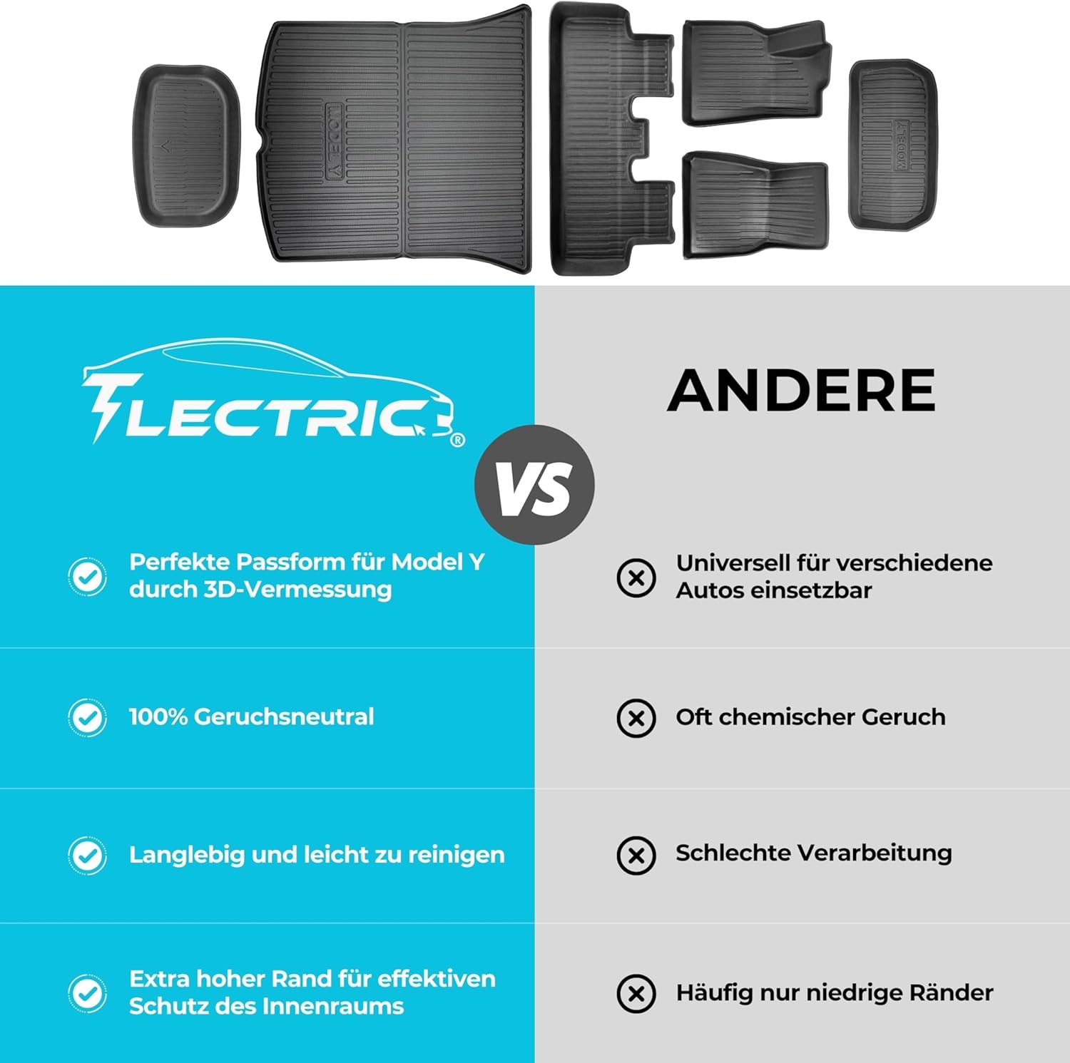- Die TLECTRIC Kofferraummatte bietet den perfekten Schutz für den Kofferraum deines Model Y. Sie ist aus strapazierfähigem Material (TPO) gefertigt und weist sowohl Regen als auch Schnee und Schmutz ab. Bei TPO handelt es sich um eine Art Kunststoff,