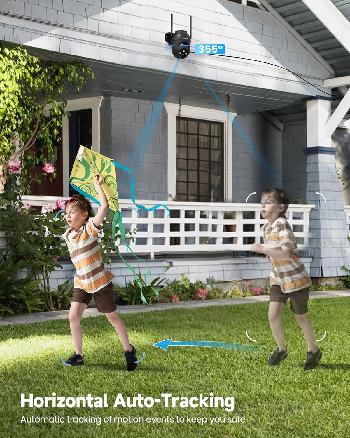 - 【Weites Sichtfeld 360° & Horizontale Spurführung】Wlan kamera outdoor unterstützt 355°horizontale 120°vertikale Rotation, Sie können die Rotation der Kamera über die App steuern。Die Überwachungskamera hat einen 130-Grad sichtbaren