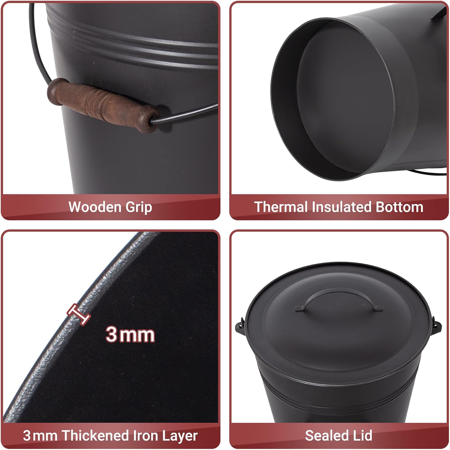 • Hitzebeständige Konstruktion: Aus 3 mm starkem Eisen gefertigt, verformt sich der Eimer auch bei hohen Temperaturen nicht. Pulverbeschichtet für Rost- und Feuchtigkeitsschutz. Ideal für heisse Asche, Kohle, Pellets oder Holzscheite - drinnen und