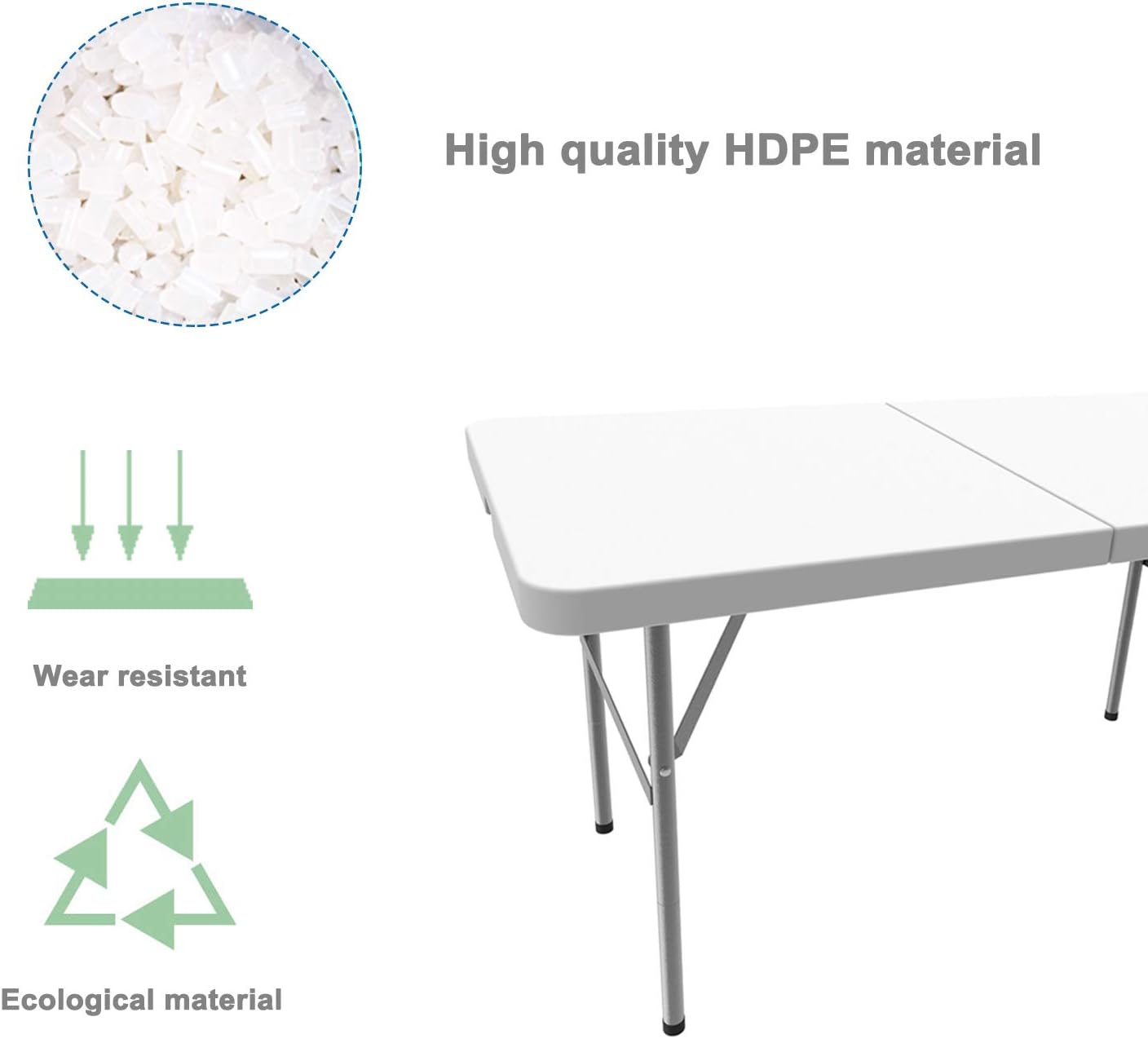 - * Material: HDPE * Aufgeklappte Grösse: 122 x 61 x 74 cm * Maximale Traglast von 100 kg: Perfekt stabil, geeignet zum Servieren und Ausstellen vieler Dinge * Die Oberfläche des Produkts ist glatt und haltbar, was eine verbesserte Haltbarkeit des