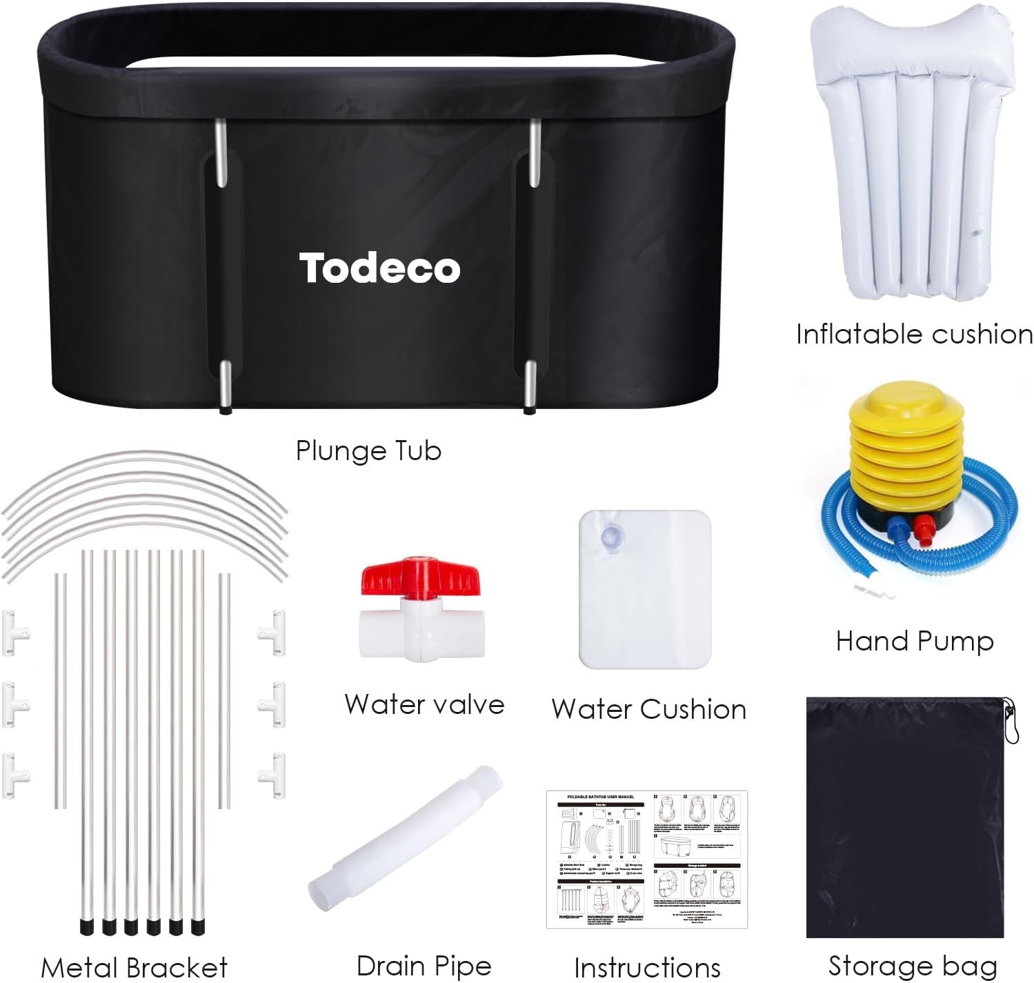 - 【Exzellenter Service】Unsere tragbaren Eisbadewannen für Erwachsene umfassen 6 * lange Stützsäulen; 2 * kurze Stützsäulen; 4 * Bogenstützrahmen; 6 * T-Typ T-Stück;1 * faltbare Badewanne, 1 * Wasserventil, 1 * Entwässerungsrohr, 1 *
