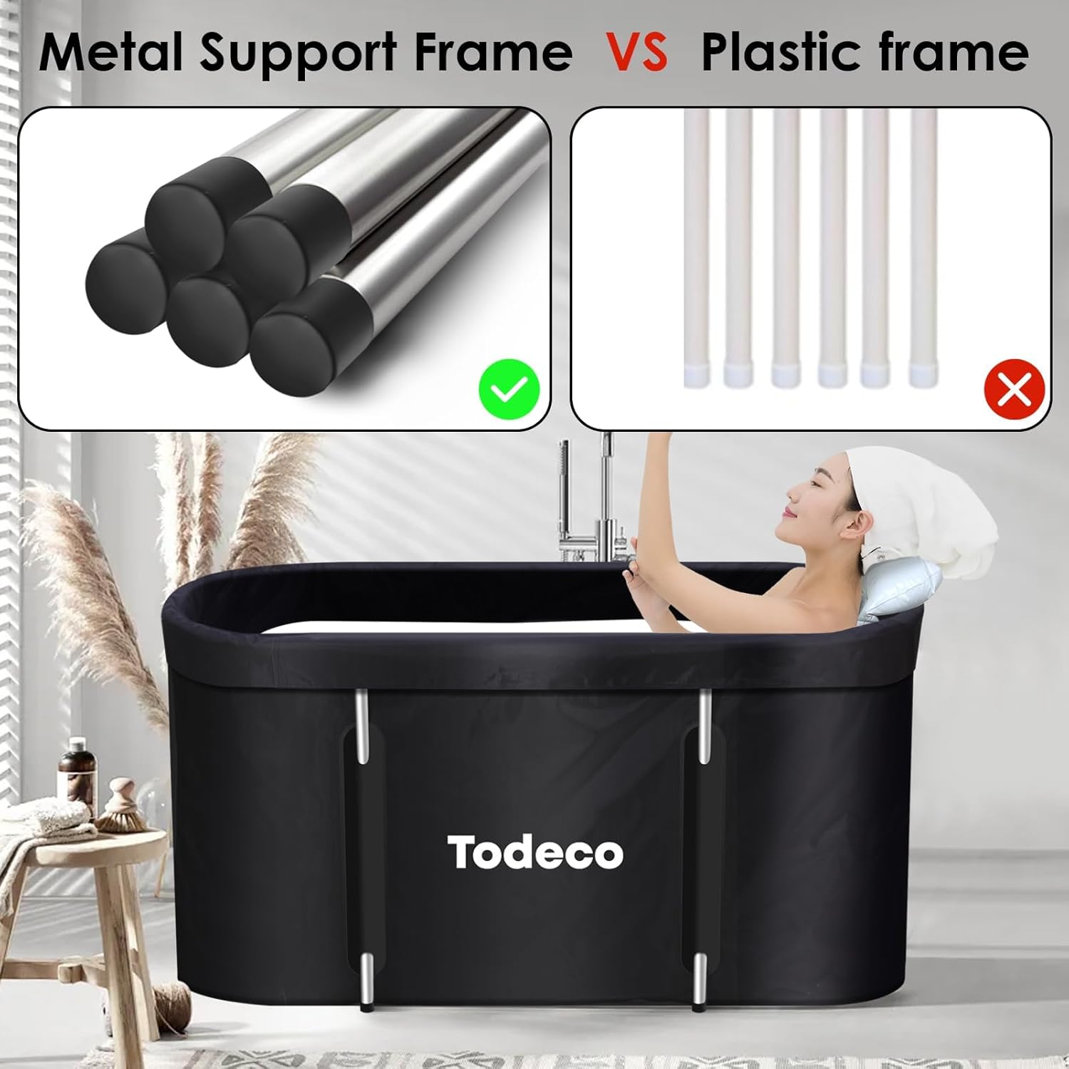 - 【Superstarke Unterstützung】Unsere Metallrahmen-Faltbadewanne ist die ideale Wahl für Menschen, die mehr Stabilität und Unterstützung von ihrer Badewanne wünschen. Im Gegensatz zu Kunststoffrahmen-Faltbadewannen hat unsere Badewanne einen soliden