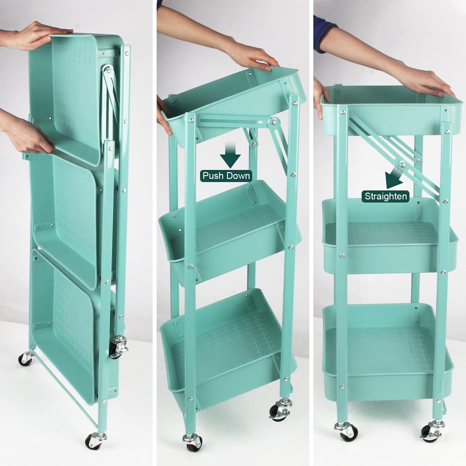 • 【Faltbares Design】 Das faltbare Design des Aufbewahrungswagens erfordert keine Montage, falten Sie einfach den Wagen auf und installieren Sie die Räder. Der Wagen ist im zusammengeklappten Zustand nur 7 cm breit, sodass er bei Nichtgebrauch