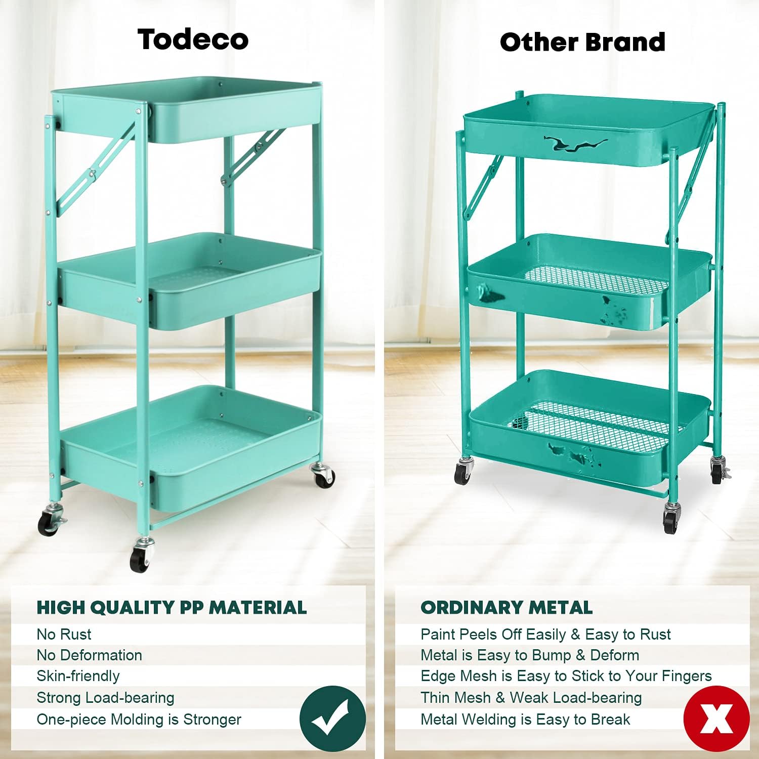 Todeco Klappbarer Rollwagen mit 3 Ebenen, Servierwagen, Küchenwagen aus Metall und Kunststoff, Keine