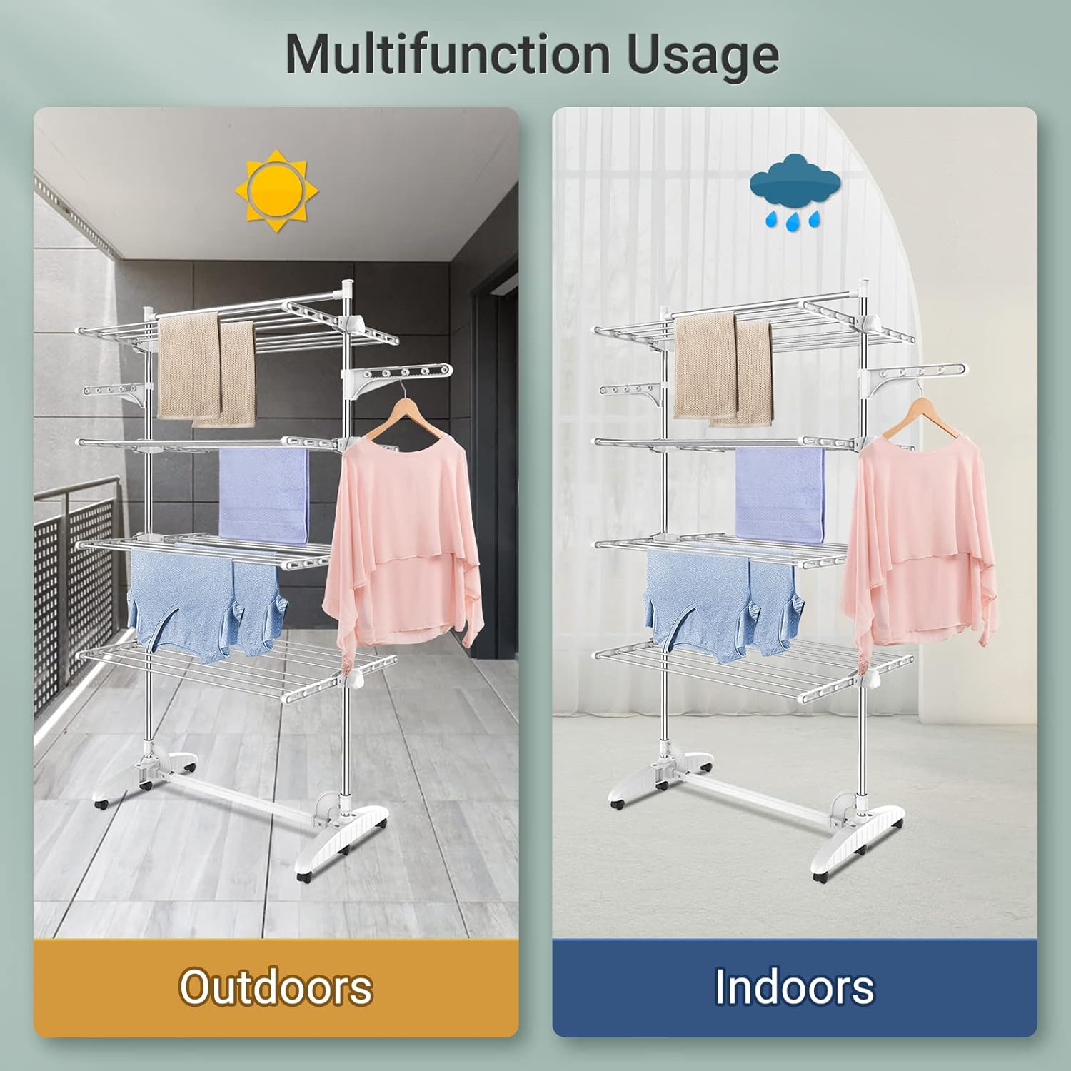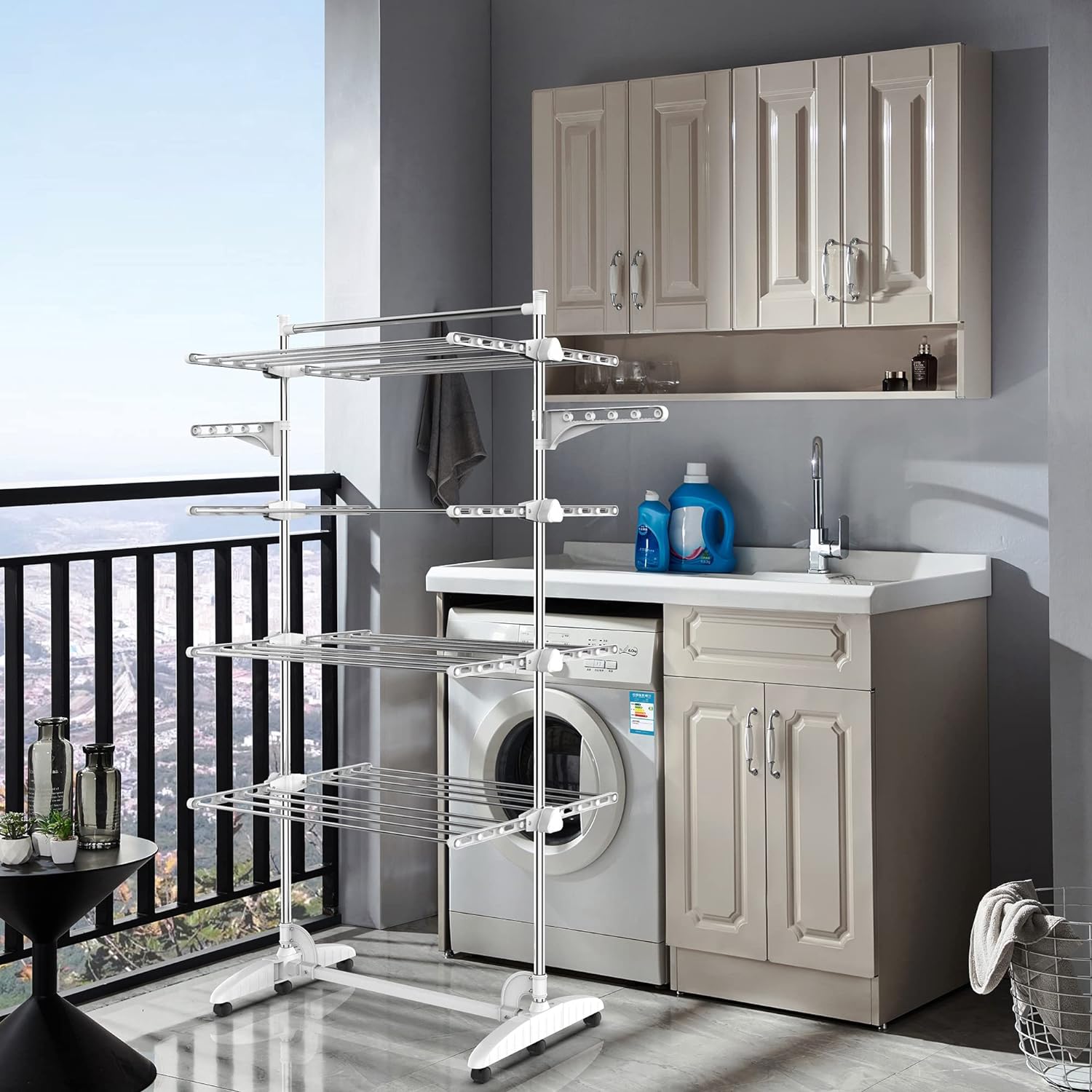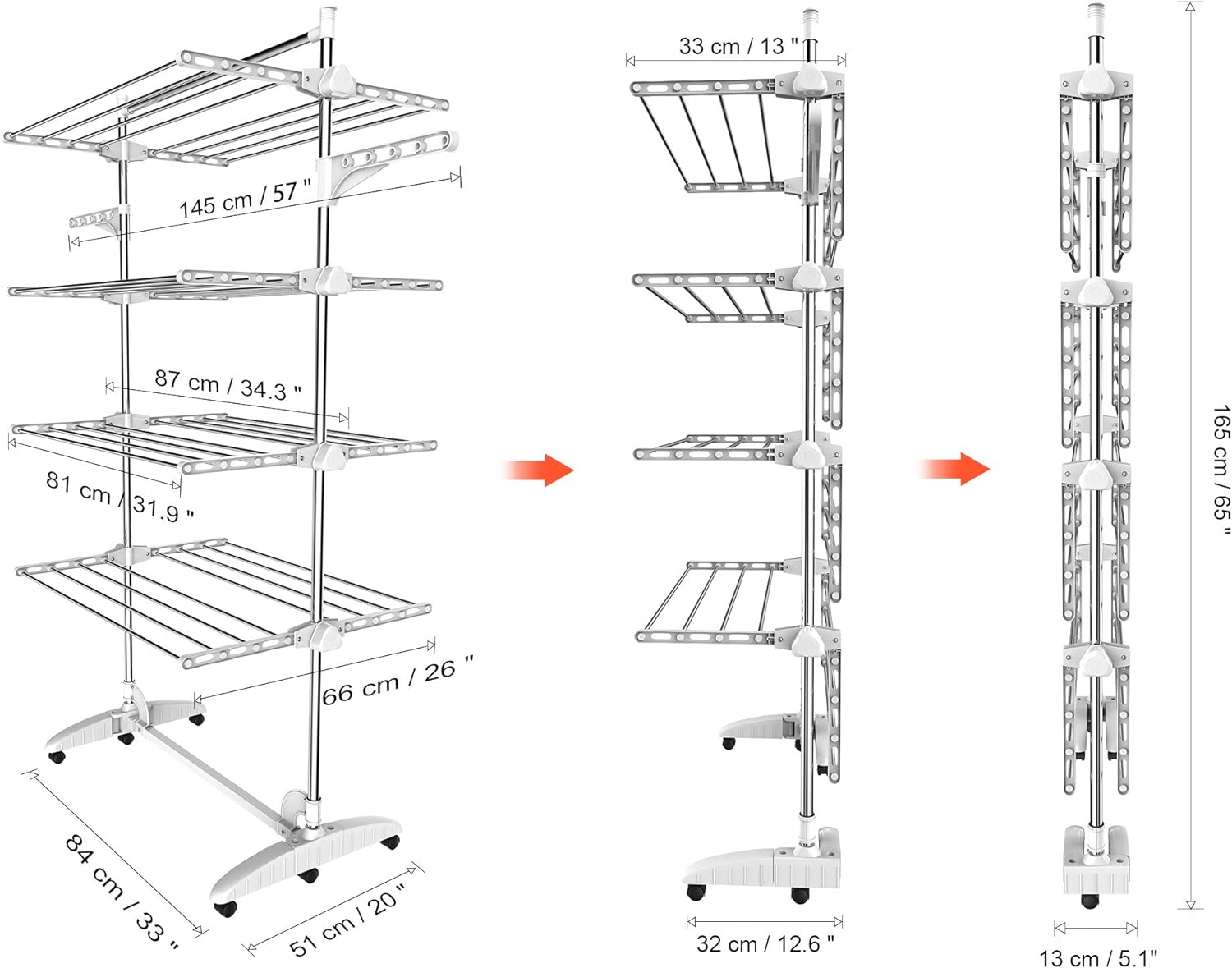 • Hält sogar eine volle Ladung Wäsche, die starken Edelstahlrohre halten das Produkt stabil und machen es sicher zu bedienen. * Ideal für kleine Räume, da jede Hängeschiene zusammengeklappt werden kann, um Platz zu sparen * Die verwendeten Materialien sind umweltfreundlich und schonen die Umwelt * Chices, modernes Design, dass zu Ihrem Dekor passt