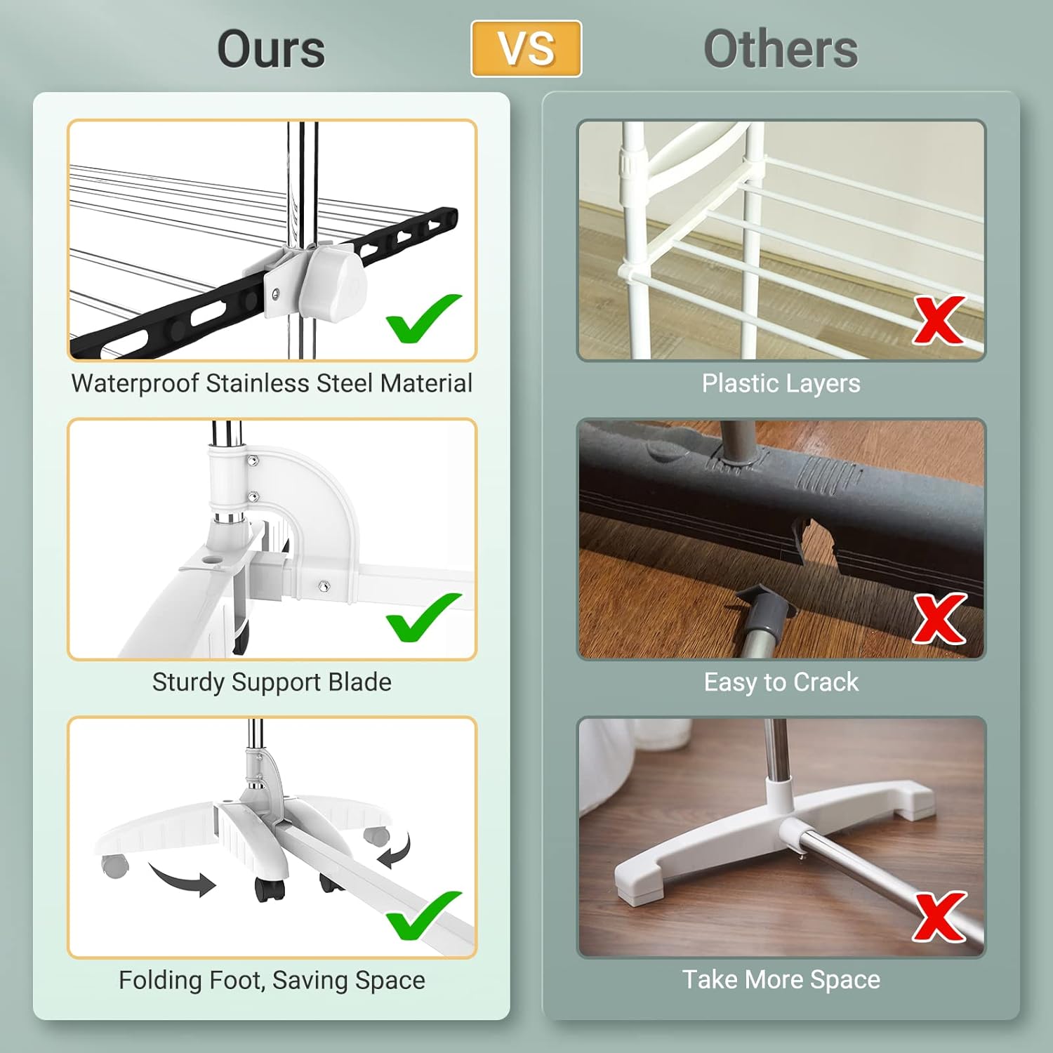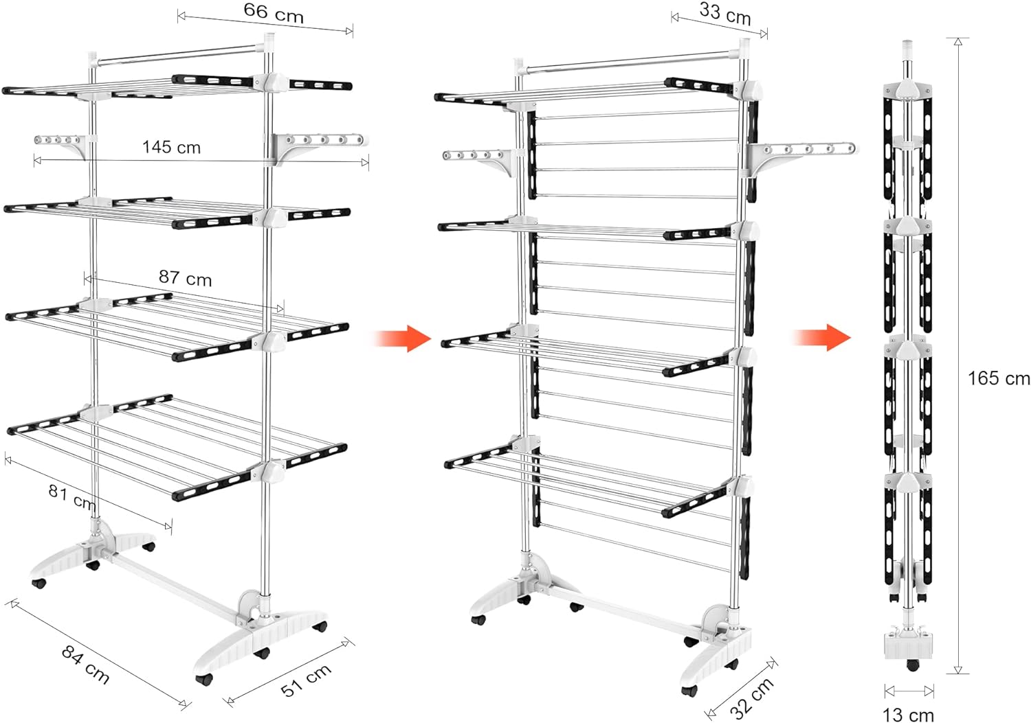 - ROBUST & LANGLEBIG: Der Turmtrockner mit Langlebige Edelstahlrohre, jede Trockeneben bietet eine max Belastbarkeit von bis zu 3 kg; Es ist ein idealer Wäscheständer für Sie Ihre Kleidung hängen.