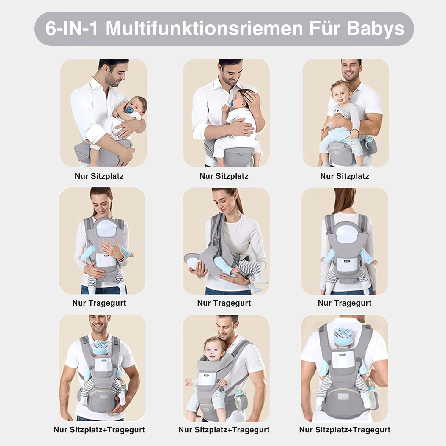 - 【Bequemes Design】: Der Babyträger verfügt über eine Vielzahl von komfortablen und personalisierten Designs. So kann zum Beispiel der Klettverschluss einfach die Elastizität anpassen. Taschen auf beiden Seiten des Hüftgurts sind praktisch, um