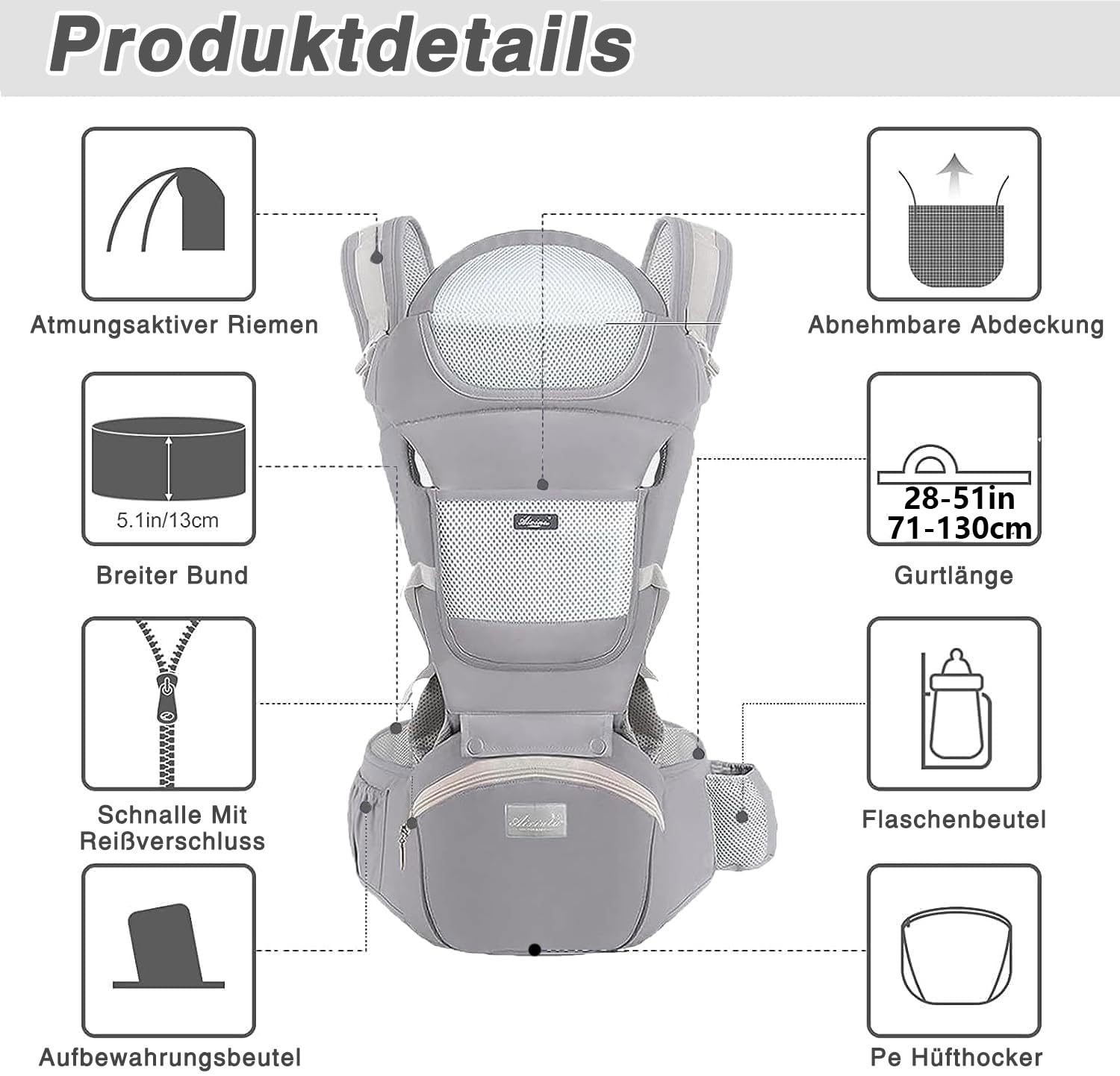 - 【Sicherheit und Garantie】: Babytragen unterliegen strengen Tests durch unabhängige Drittlabore, um Sicherheit und Qualität zu gewährleisten. Es wird sichergestellt, dass die verwendeten Materialien sowohl für Erwachsene als auch für Babys sicher