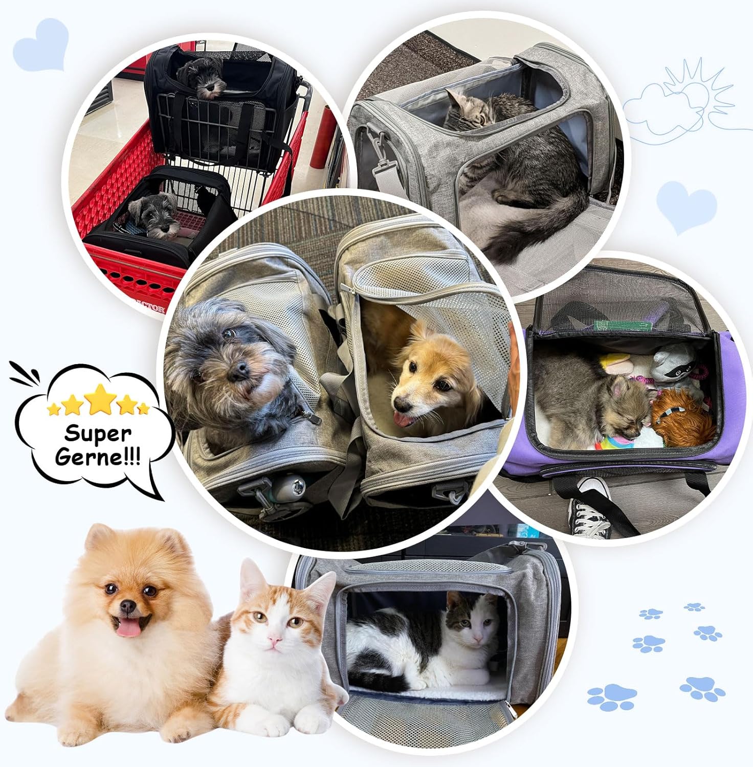 - 【GRÖSSEN UND GEWICHTE】:Die Grösse dieses Haustier Transporttasche ist 43cm, 28cm, 28cm, geeignet für Kätzchen und Welpen mit Gewicht bis zu 5kg. Bitte wählen Sie Ihren Träger nicht nur anhand des Gewichts Ihres Haustieres. Beziehen Sie sich