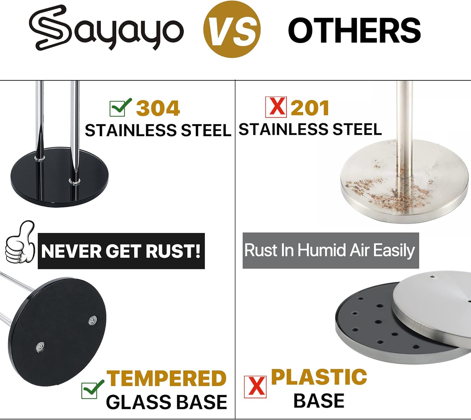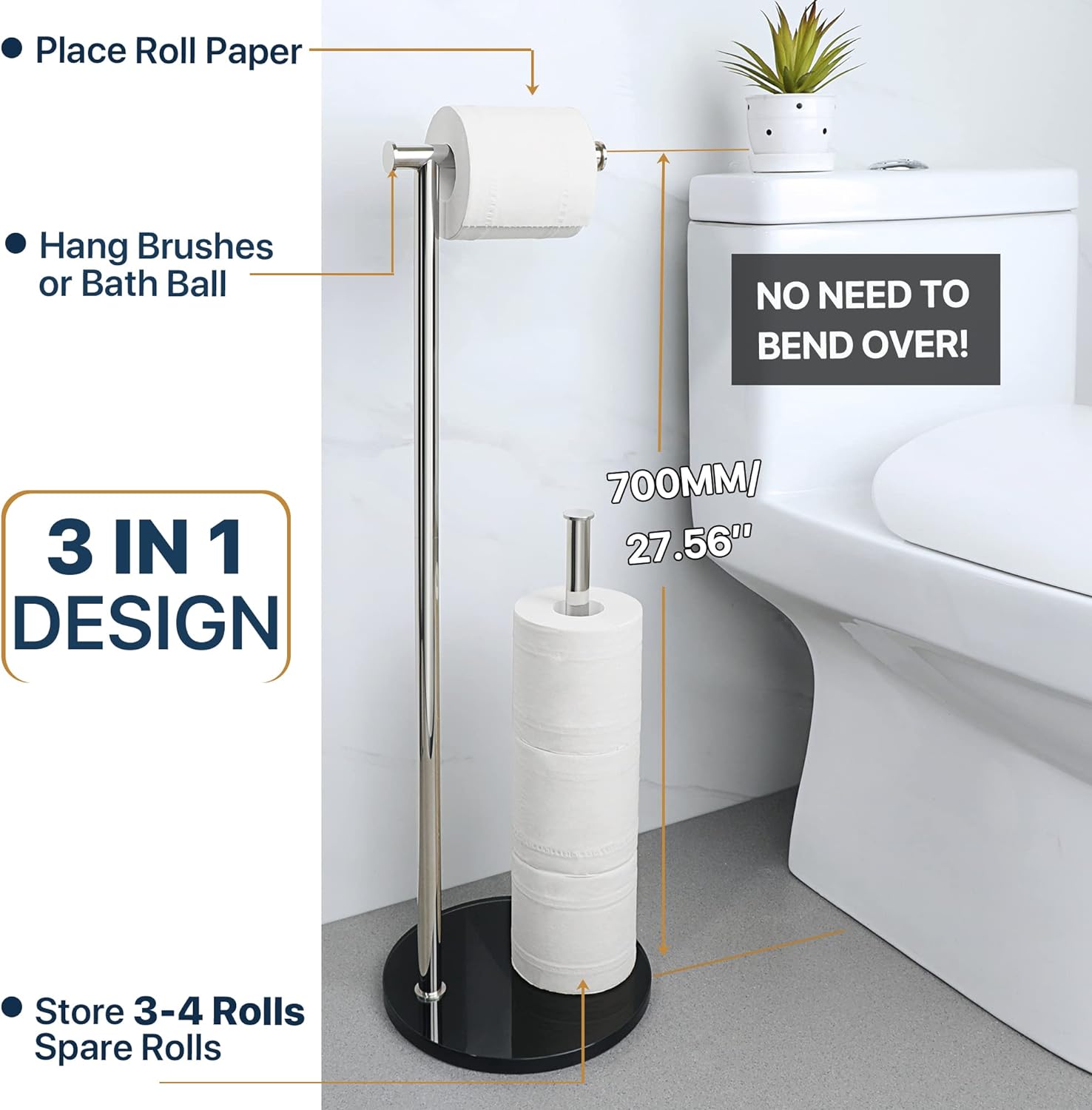 • ANGEMESSENE HÖHE - 70 cm hohe Stange ist die angemessene Grösse, um Rollenpapier einfach zu nehmen. Die rechteckige Basis bietet zusätzlichen Platz zum Aufbewahren von Rollen.