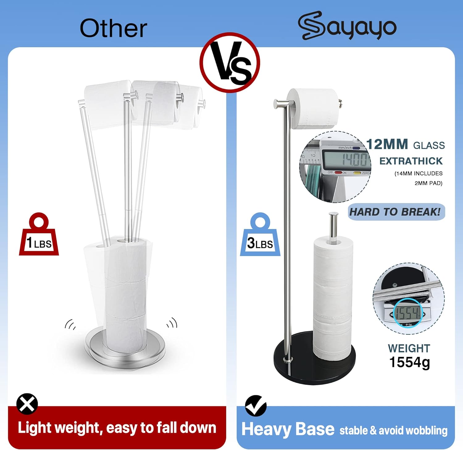 Toilettenpapierhalter Stehend, SAYAYO Klopapierhalter Stehend mit Gehärtetem Glas Basis Schwarz und