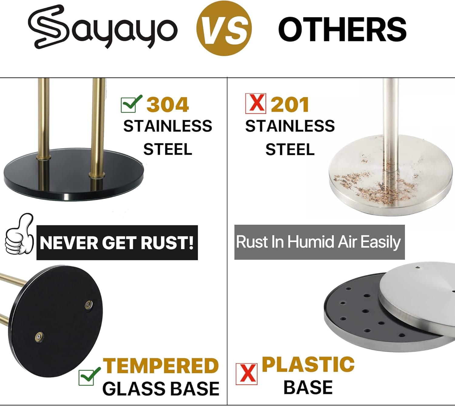 Toilettenpapierhalter Stehend, SAYAYO Klopapierhalter Stehend mit Gehärtetem Glas Basis Schwarz und