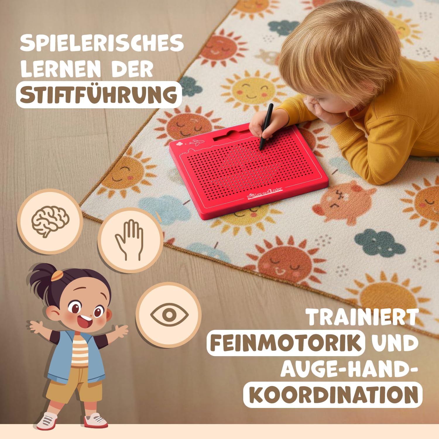 - MAGISCHER SPIELSPASS Magnetspiele ziehen Kinder seit jeher in ihren Bann. Wie von Zauberhand entstehen tolle Kunstwerke. Mit dem magnetischen Stift werden die versteckten Kugeln sichtbar gemacht.