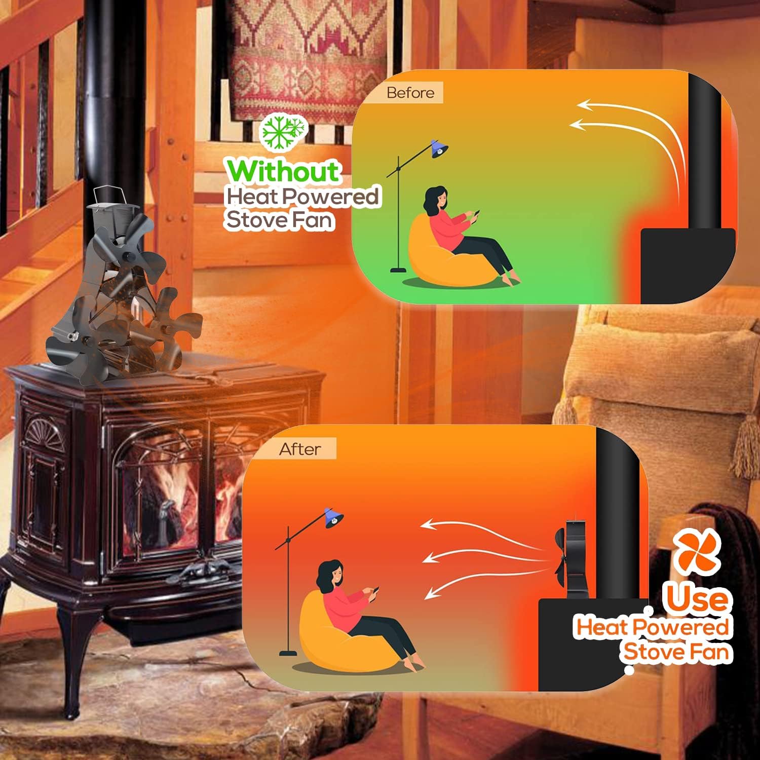 • đŸ”„ă€Upgrade Triple Ofenventilator】 Der wĂ€rmebetriebene Ofenventilator mit 12 FlĂŒgeln kann mehr warme Luft zirkulieren und die Effizienz des Produkts verbessern. Es wird weit verbreitet in Holzofen, Gasherden, Kaminen usw.