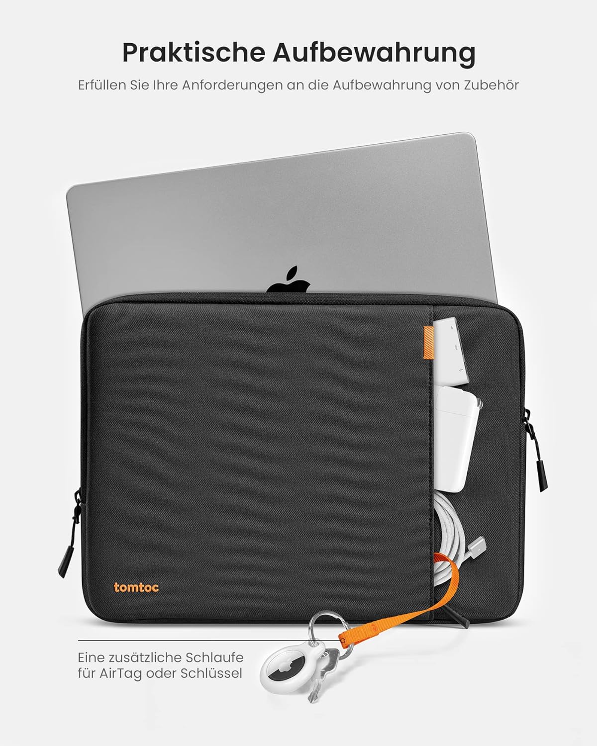 - Schutz nach Militärstandard: Um die härtesten Situationen zu bewältigen: von Stürzen über Stösse bis hin zu Vibrationen, schlug tomtoc das Konzept „360-Grad-Schutz“ vor und entwarf die Laptoptasche mit origineller CornerArmor Technologie,