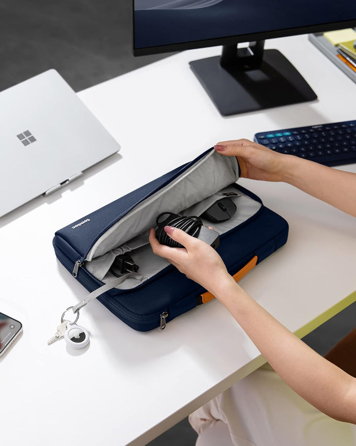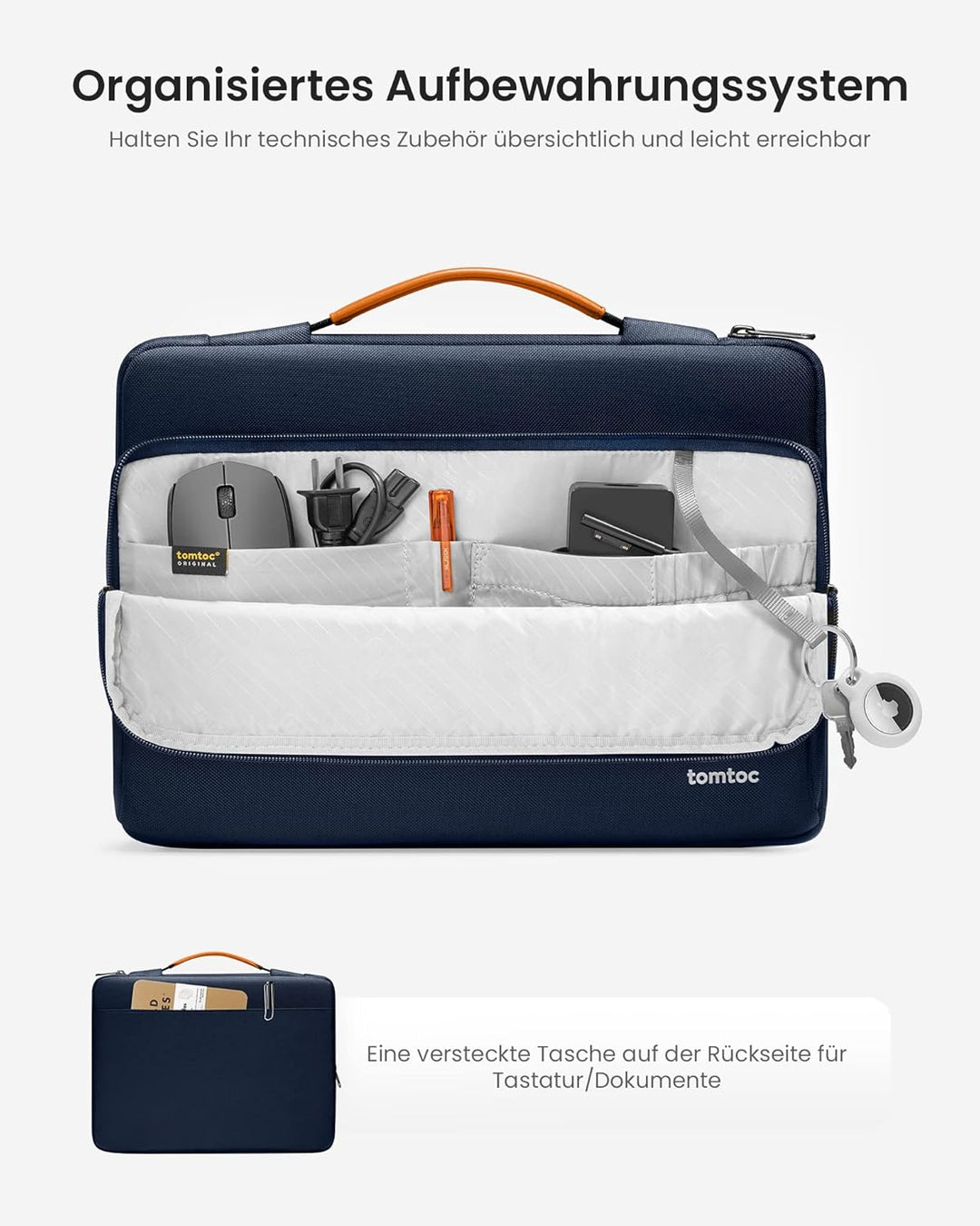 - Praktisches, organisiertes Aufbewahrungssystem: Diese Aktentasche verfügt über ein intelligentes Staufach auf der Vorderseite mit verschiedenen Innentaschen und einer Schlaufe für AirTag oder Schlüssel. Sie können Laptop-Zubehör wie Ladekabel,