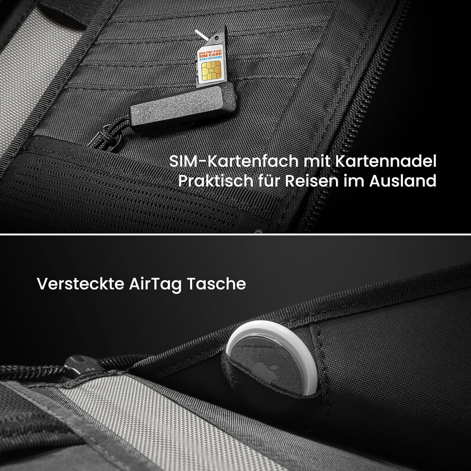 - Eingebauter SIM-Kartenhalter mit Eject Pin: Es ist günstiger und praktischer, im Ausland eine lokale SIM Karte zu verwenden. Deshalb haben wir ein kleines Fach mit Eject Pin hinzugefügt, damit Sie Ihre SIM-Karte ganz bequem wechseln und sicher