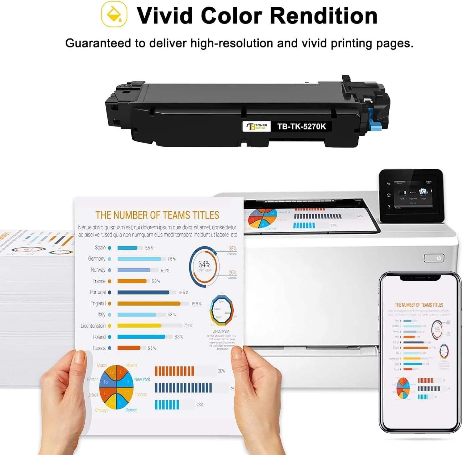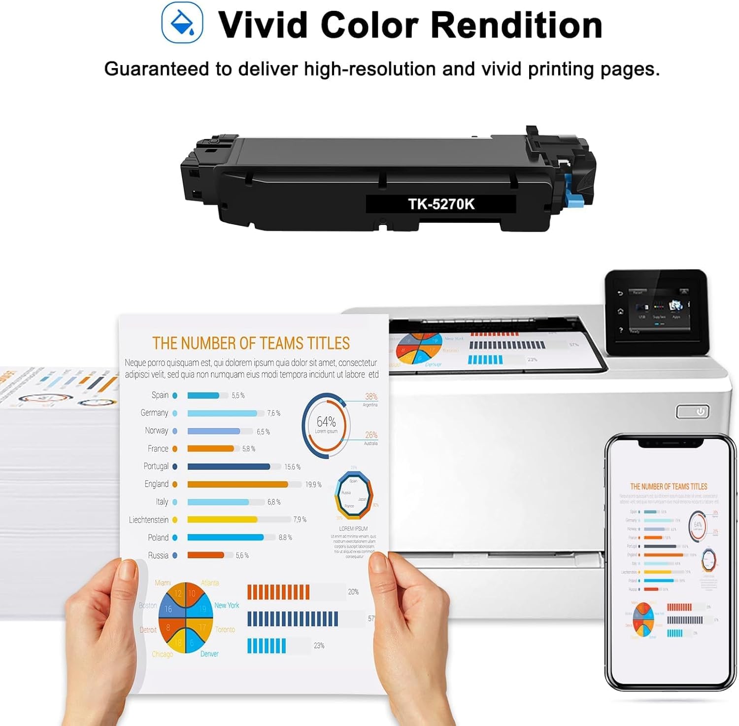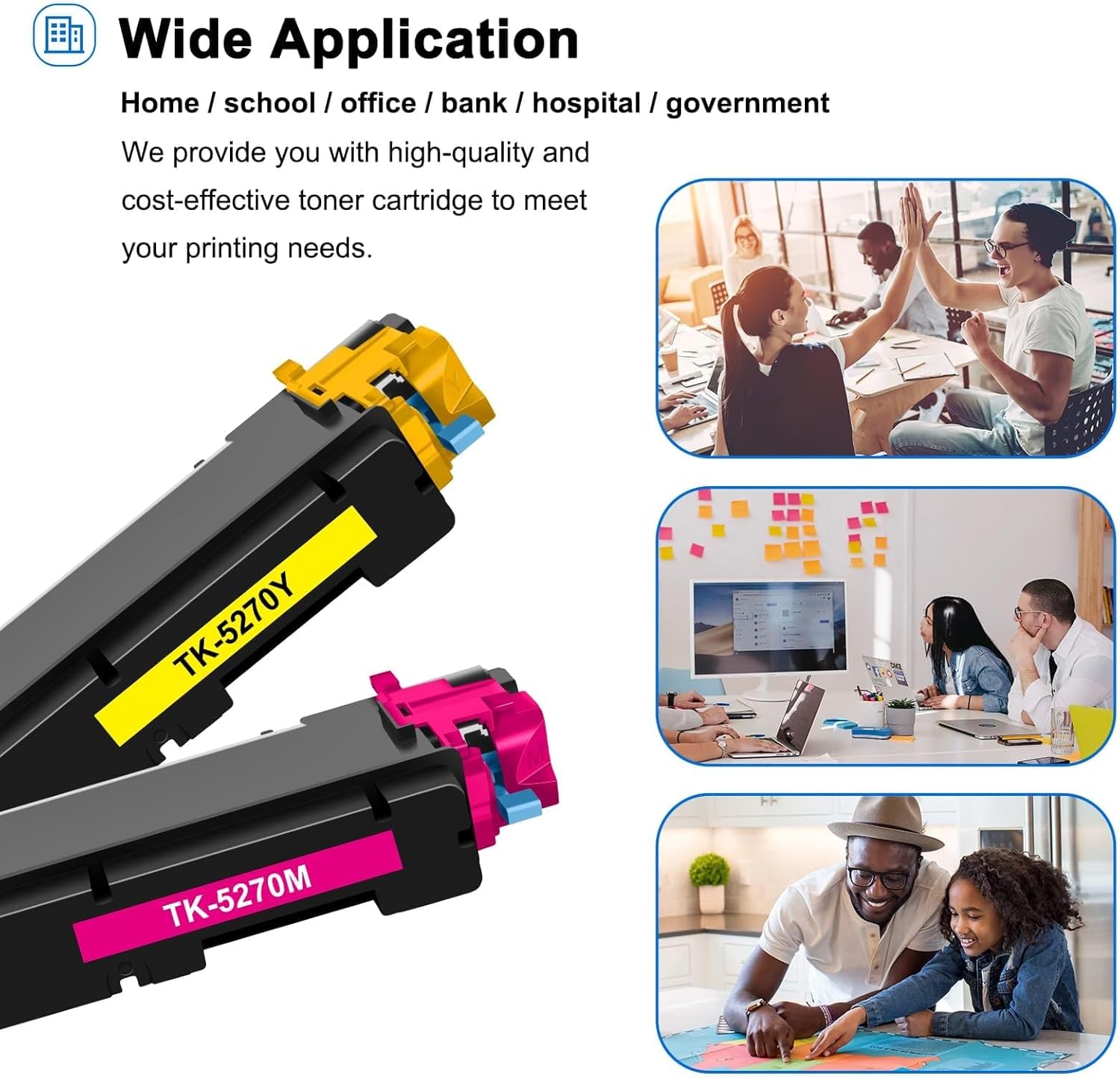 - Inklusive 4-kompatibler mehrfarbiger TK-5270 Tonerkartuschen, die TK-5270K TK-5270C TK-5270M TK-5270Y ersetzen könnenc