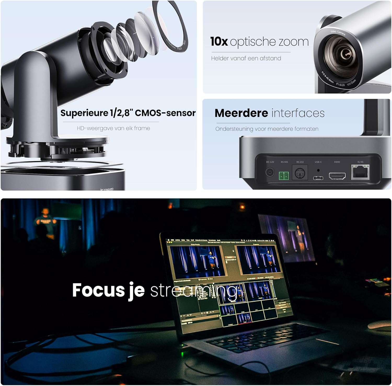- ✈【10-facher optischer Zoom HDMI PTZ Kamera】 HD 1080P PTZ-Kamera mit 10-fachem optischem Zoom, 1/2.8 hochwertiger CMOS-Sensor, effektive Pixel 2,38 Megapixel, lebensechte Farben und schöne Bildqualität, maximale Auflösung bis zu 1920×1080 bei