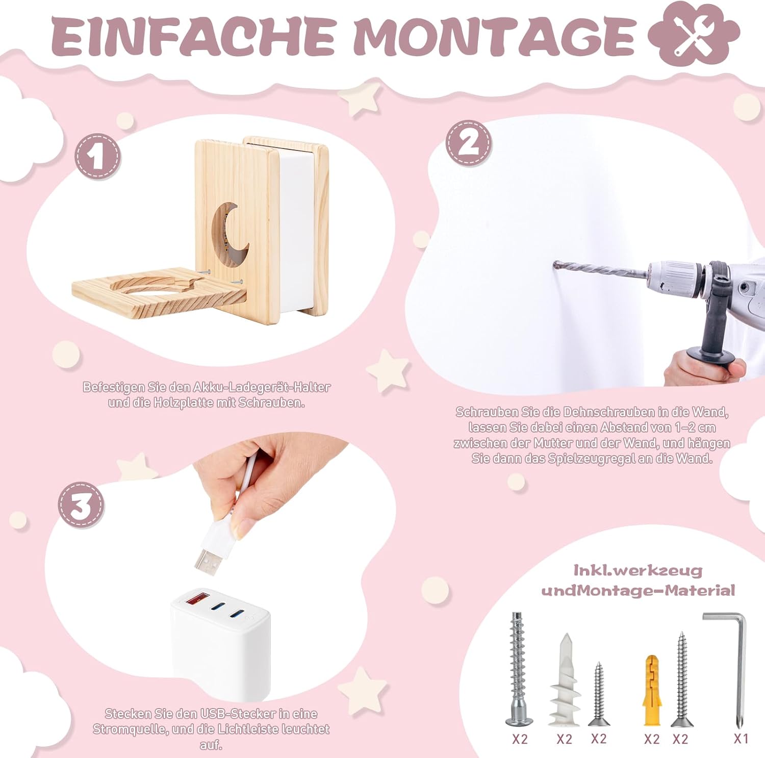 - Mondmuster-Design: Das schwebende Tonie-Regal ist mit einem Mondmuster gestaltet, das als Dekoration für Kinderzimmer verwendet werden kann und bei Kindern sehr beliebt ist