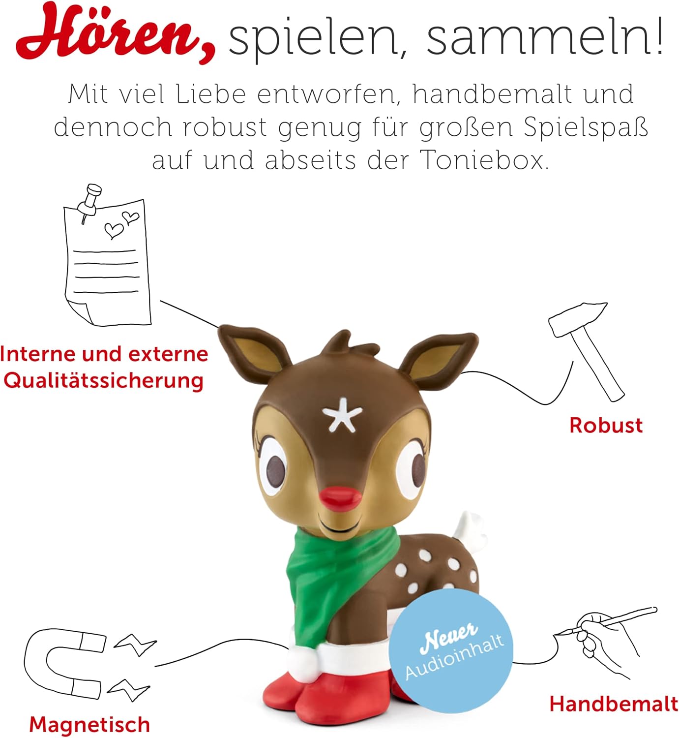 - Lieferumfang & Details – Tonie-Figur Reh, inkl. 22 Tonie-Lieder: Lieblings-Kinderlieder – Weihnachtslieder 2, für Kinder ab 3 Jahren, Spielzeit ca. 54 Minuten.