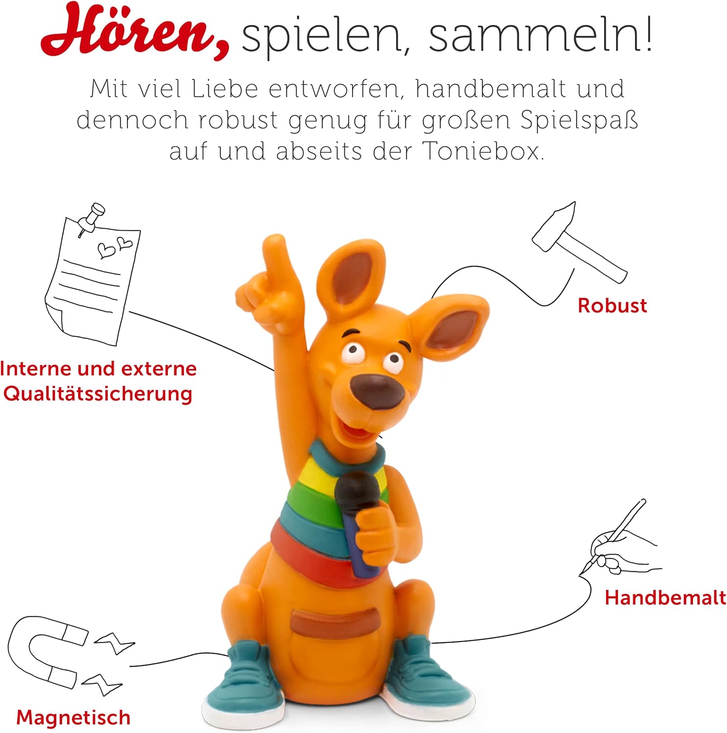 - Lieferumfang & Details – Tonie-Figur Känguru, inkl. 16 Tonie-Lieder: Volker Rosin – Das singende Känguru, für Kinder ab 3 Jahren, Spielzeit ca. 50 Minuten.