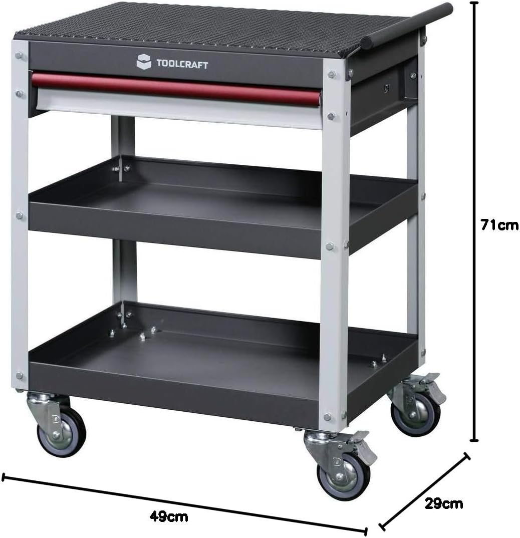 - Ergonomisches und mobiles Design: 469 mm breite Ablagefläche, 870 mm Höhe, 684 mm Länge bieten ausreichend Platz und Mobilität im Arbeitsbereich; geeignet als Werkstattwagen, Werkzeugwagen und Werkstattrollwagen