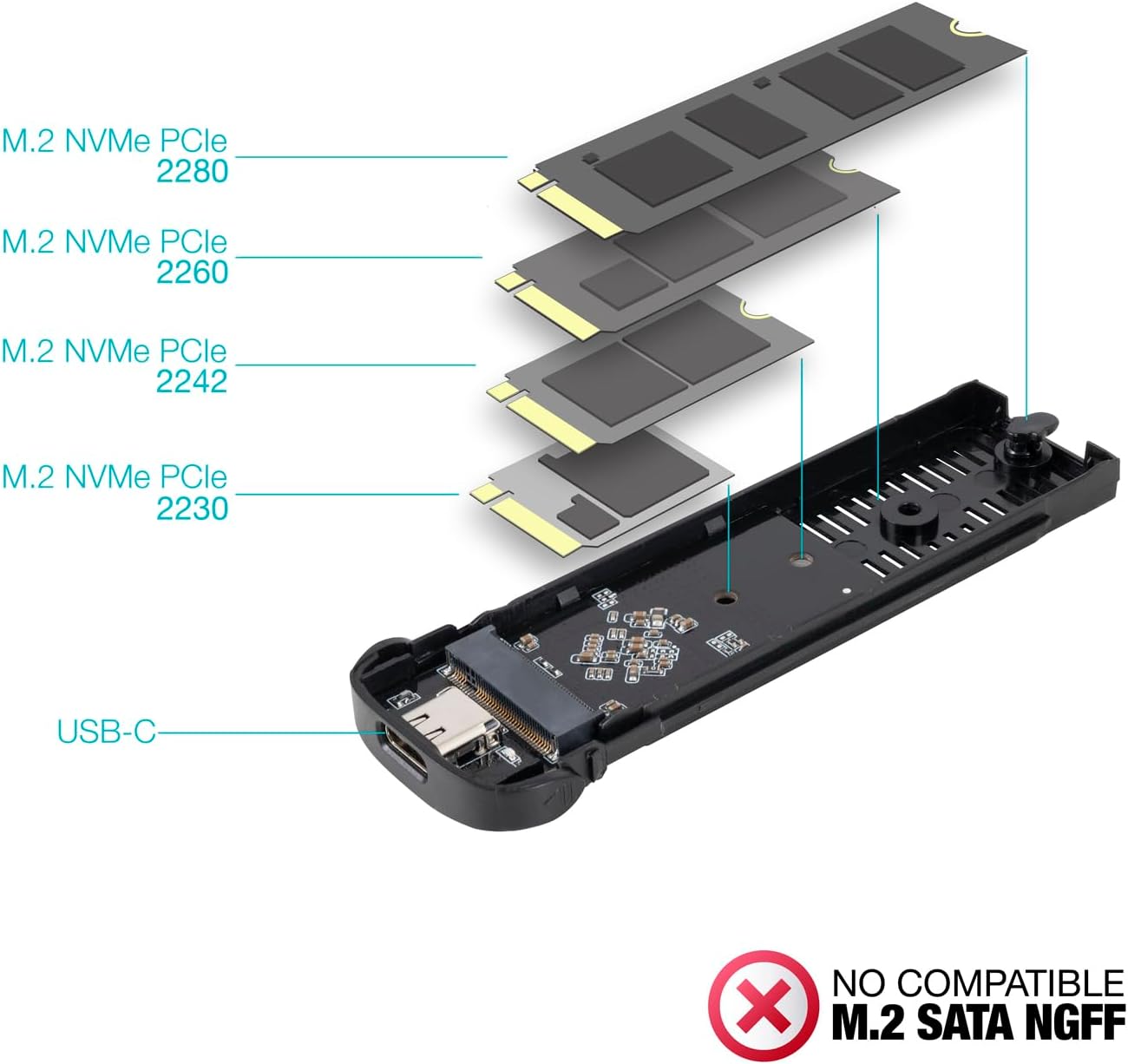- GROSSE KOMPATIBILITÄT: Sein spezielles Design ermöglicht die Kompatibilität mit einer Vielzahl von M.2 NVMe PCIe 2230/2242/2260/2280 SSD-Speicherlaufwerken. Darüber hinaus ist es mit Betriebssystemen wie Windows-, MacOS- und Linux-Distributionen
