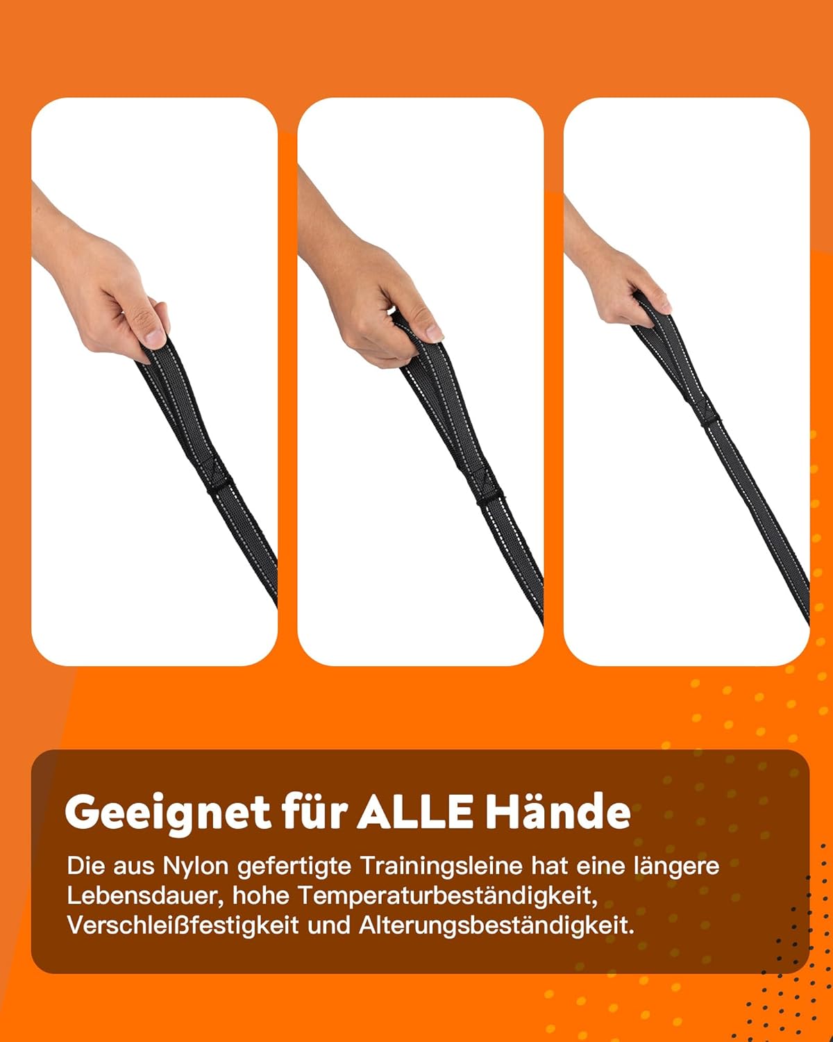 • 🐶 ROBUSTES MATERIAL - Die schleppleine ist aus robustem Nylon hergestellt und damit super reiss-, biss- und wetterfest. Sie eignet sich für alle Hunde aller Grössen, egal ob klein, mittel, oder gross.