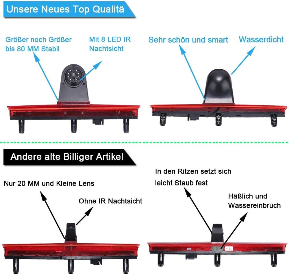 - Bremslicht-Kamera Rückfahrkamera Geeignet Ersatz für W T5 Bus Transporter Caravelle Business mit Heckklappe dritte 3.Bremsleuchte 2003-2015 Bj