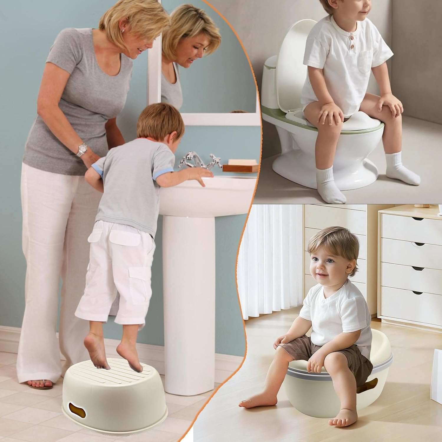 - 【VIELSEITIGES 3-IN-1 GERÄT】Der kombiniert ein Töpfchen, einen WC-Sitz und einen Tritthocker in einem Produkt!