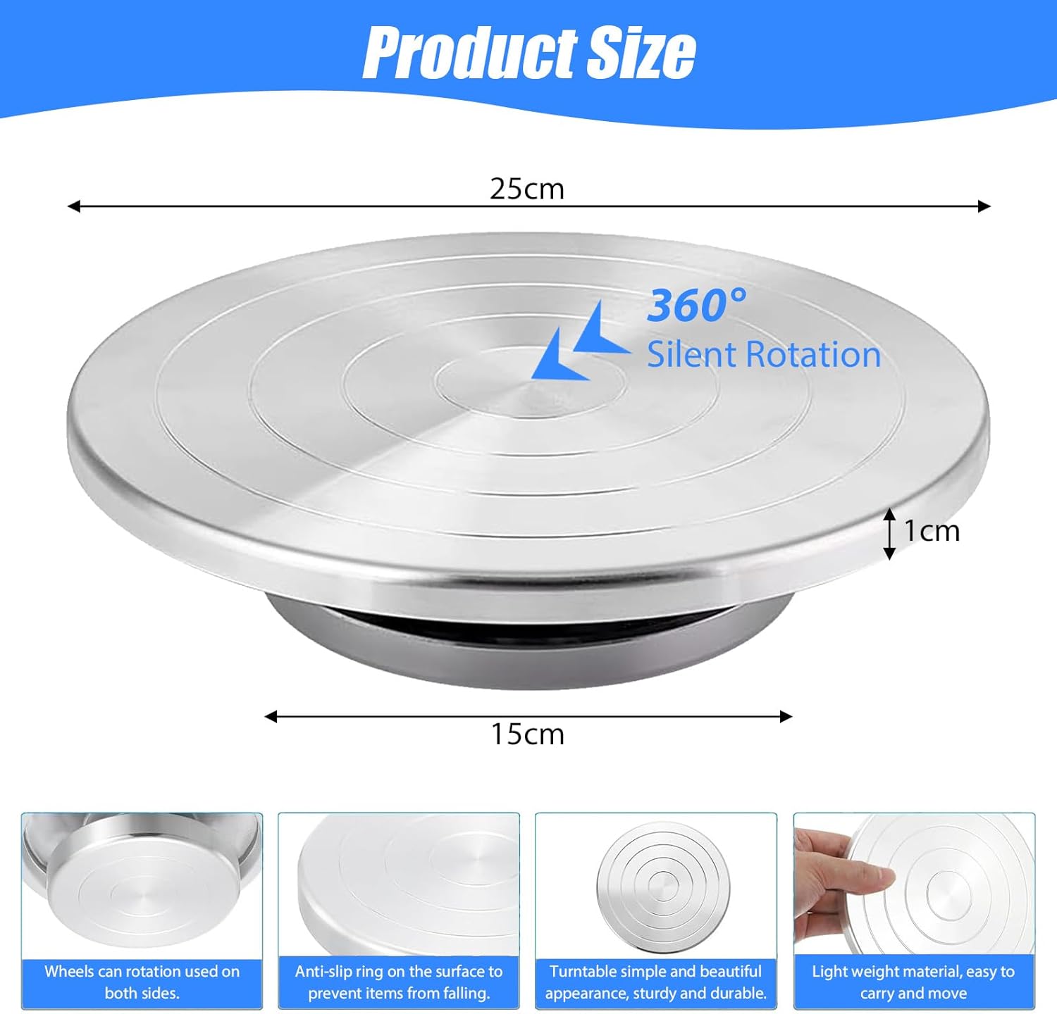 - 【Langlebiges Material】Der Drehteller besteht aus hochwertigem Metallmaterial, mit einer fein polierten Oberfläche, die eine gute Verschleiss- und Korrosionsbeständigkeit aufweist. Der Boden ist mit Anti-Rutsch-Unterlegscheiben entworfen, um