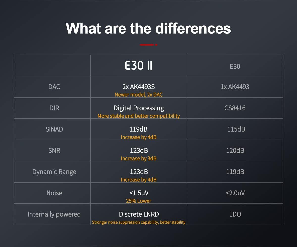 • 👍 Unterstützt hochauflösendes Audio Der ▶️ E30 II verwendet zwei Sub Flaggschiff Chips AK4493S der VELVET Sound Technologie von AKM. AK4493S ist eine aktualisierte Version des vorherigen AK4493. Zwei AK4493S parallel können eine bessere