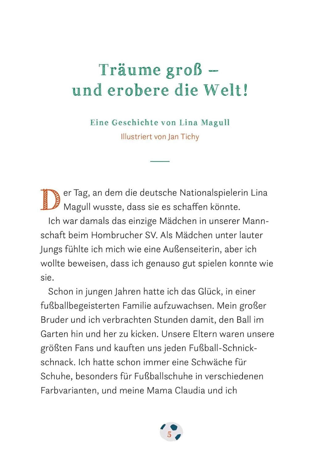 Dribbel. Pass. Tor! Das Buch zum Fussball EM 2024!Mit einer Geschichte von İlkay Gündoğan und 12 anderen spannende Vorlesegeschichten für kleine Fussball-Fans Nerven behalten, Teamgeist zeigen, fiese Fouls abwehren – langweilig wird es auf dem Fussball-Platz nie! Davon erzählt auch der vorliegende Geschichtenband der Autoren-Nationalmannschaft, einem Zusammenschluss von echten Fussballprofis und ballbegeisterten Autor*innen aus aller Welt. So erfahren Hobbykicker in der Geschichte von İlkay Gündoğan, dem Fussballer des Jahres 2023 und Kapitän der Deutschen Nationalmannschaft, was »Zuhause« für ihn bedeutet. Hannes Köhler zeigt, wie Fussball Kinder verbinden kann und Profifussballerin Lina Magull teilt ihre Erinnerung daran, wie sie ihr Idol, Lionel Messi, bei ihrem Champions League Finale in Barcelona traf. Insgesamt 13 bunt illustrierte Fussballgeschichten zum Vorlesen und Selberlesen Mit 11 Geschichten von der Autoren-Nationalmannschaft und 2 Vorlesegeschichten von den Nationalspieler*innen Lina Magull und İlkay GündoğanZugehörigkeit, Teamgefühl, Identität - wichtige Message: Fussball ist mehr als ‘nur’ ein Sport Liebevoll illustriertes Fussballbuch für Kinder ab 5 Jahren – das ideale Geschenk zur Fussball-Europameisterschaft Mehr lesen
