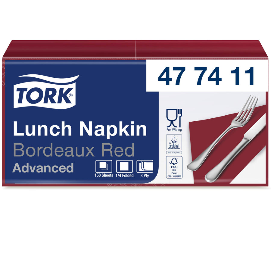 - Lieferumfang: 10 x 150 (1500) Tork Soft Lunchservietten Bordeauxrot / Moderne, 3 lagige Servietten mit hoher Saugfähigkeit / Entfaltet: 32,6x33cm (BxL) / Gefaltet: 16,3x16,5cm (BxL)