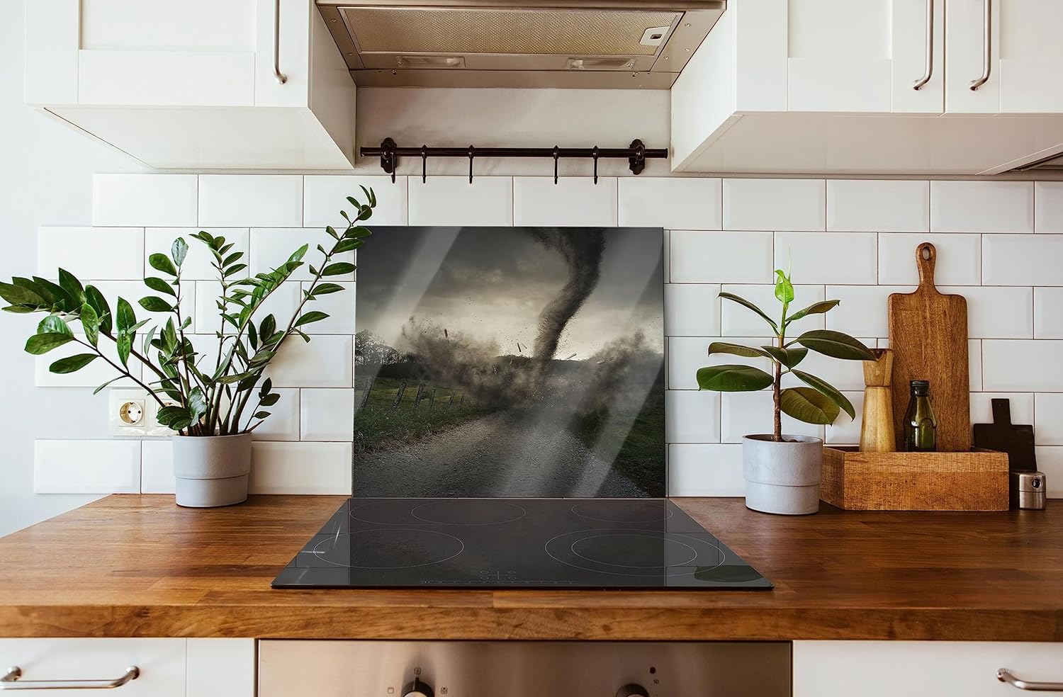 Tornado Herdabdeckplatte & Spritzschutz aus Echtglas | Für Herd-Kochfelder | 60x52 cm