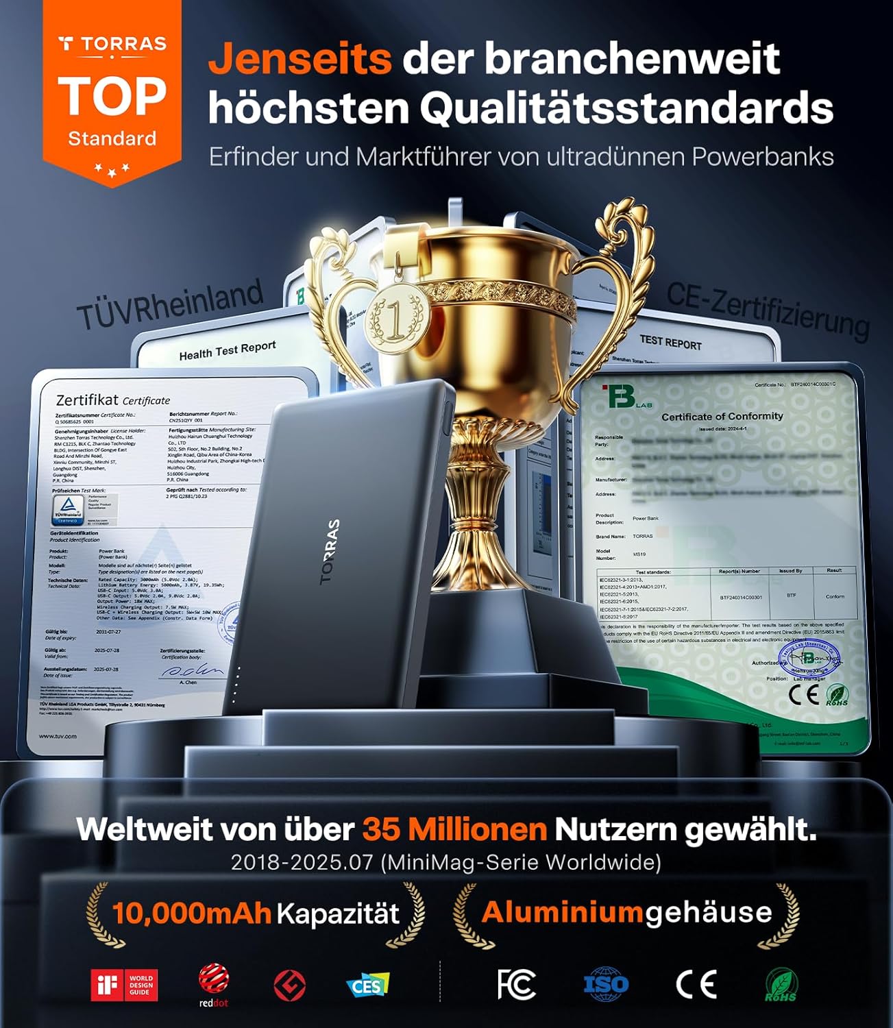 - [MiniMag 10.000mAh Power bank, sorgenfreie Energie für Ihre Reisen] Diese 10.000mAh Powerbank wiegt nur 183 Gramm und ist damit unglaublich leicht! Ihr kompaktes Design ermöglicht es, sie mühelos in Ihrer Tasche oder Ihrem Geldbeutel zu verstauen.
